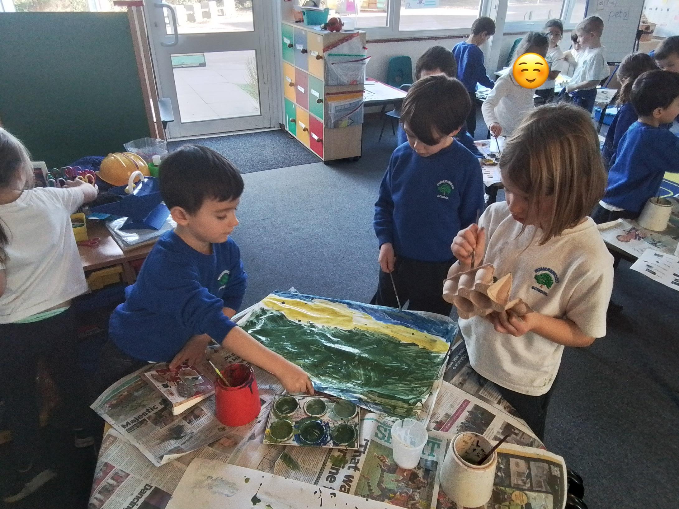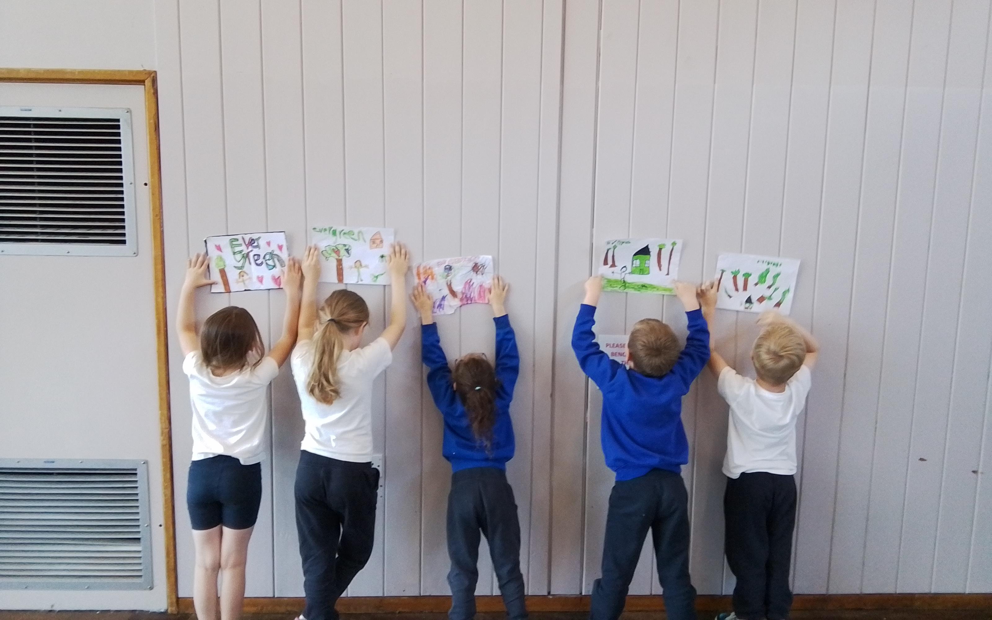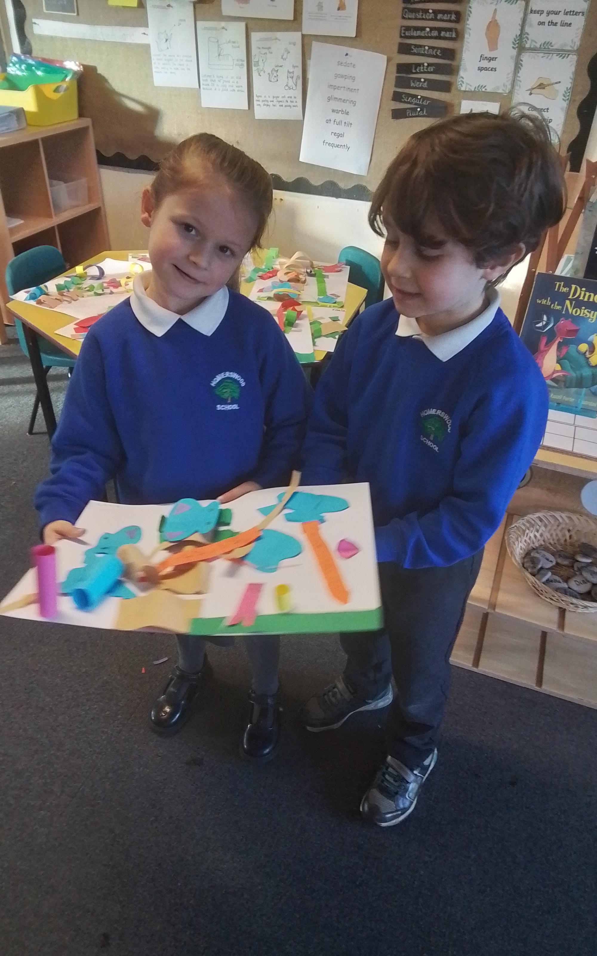 Art - Look at our 3D drawings! We have been using our paper shaping skills to make an imaginative sculpture of a tree, leaves, animals and insects. We are so proud of the children's creations and team work!