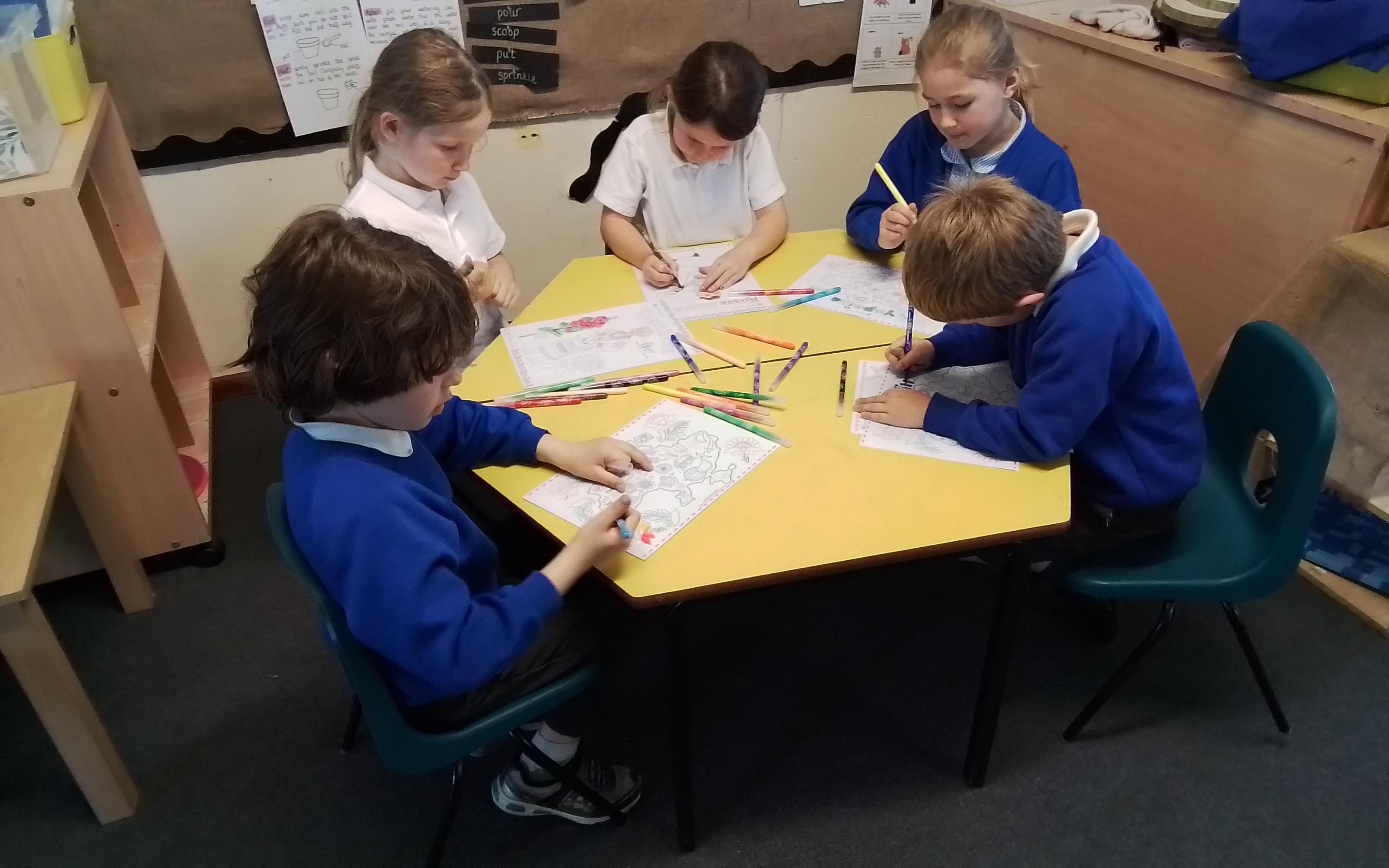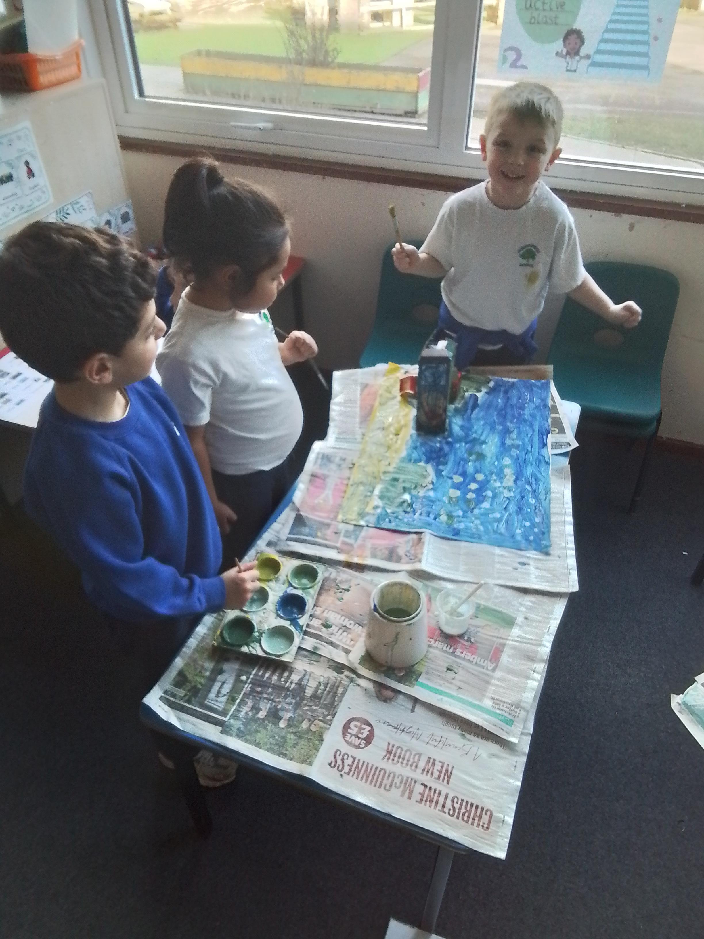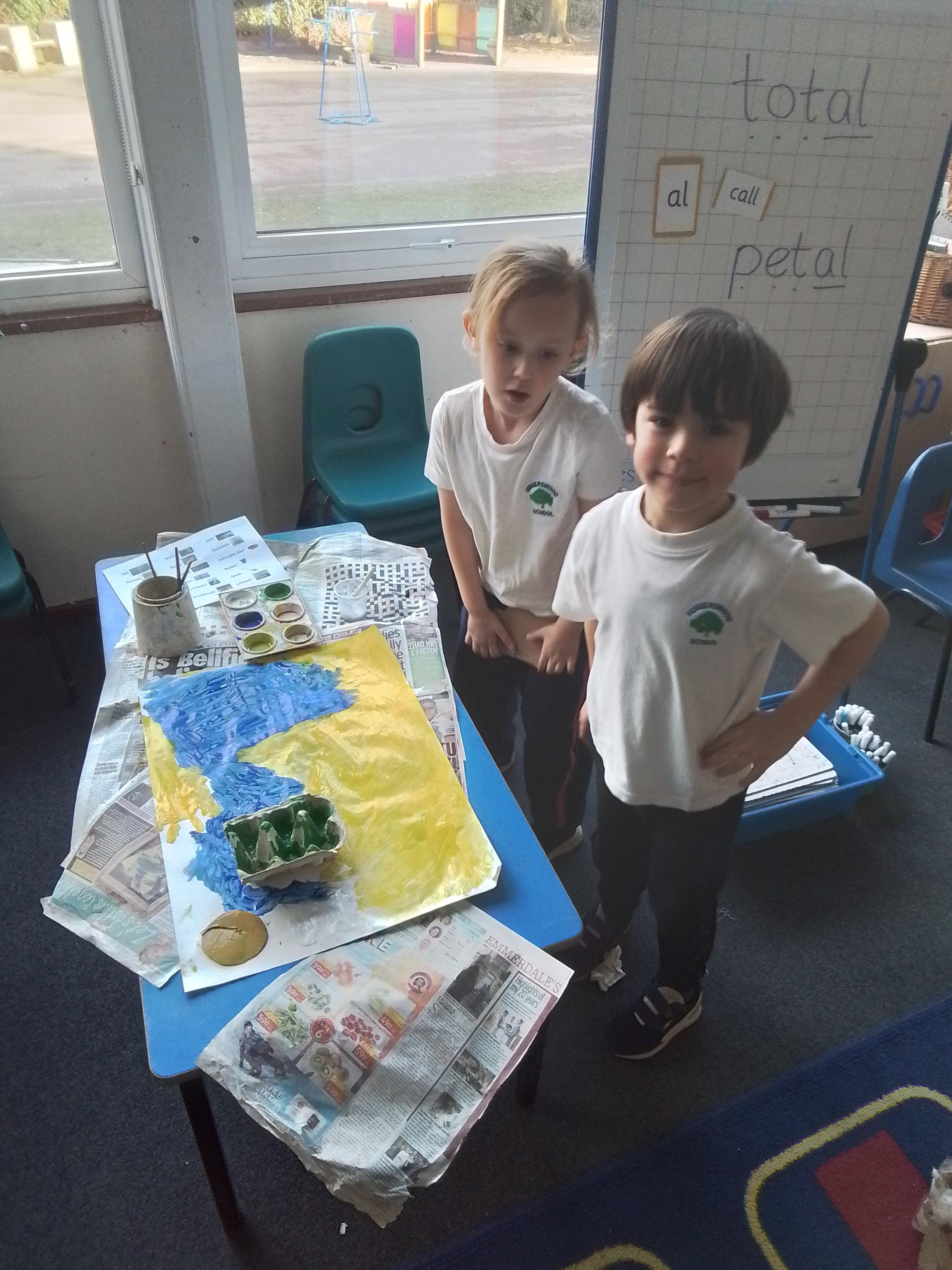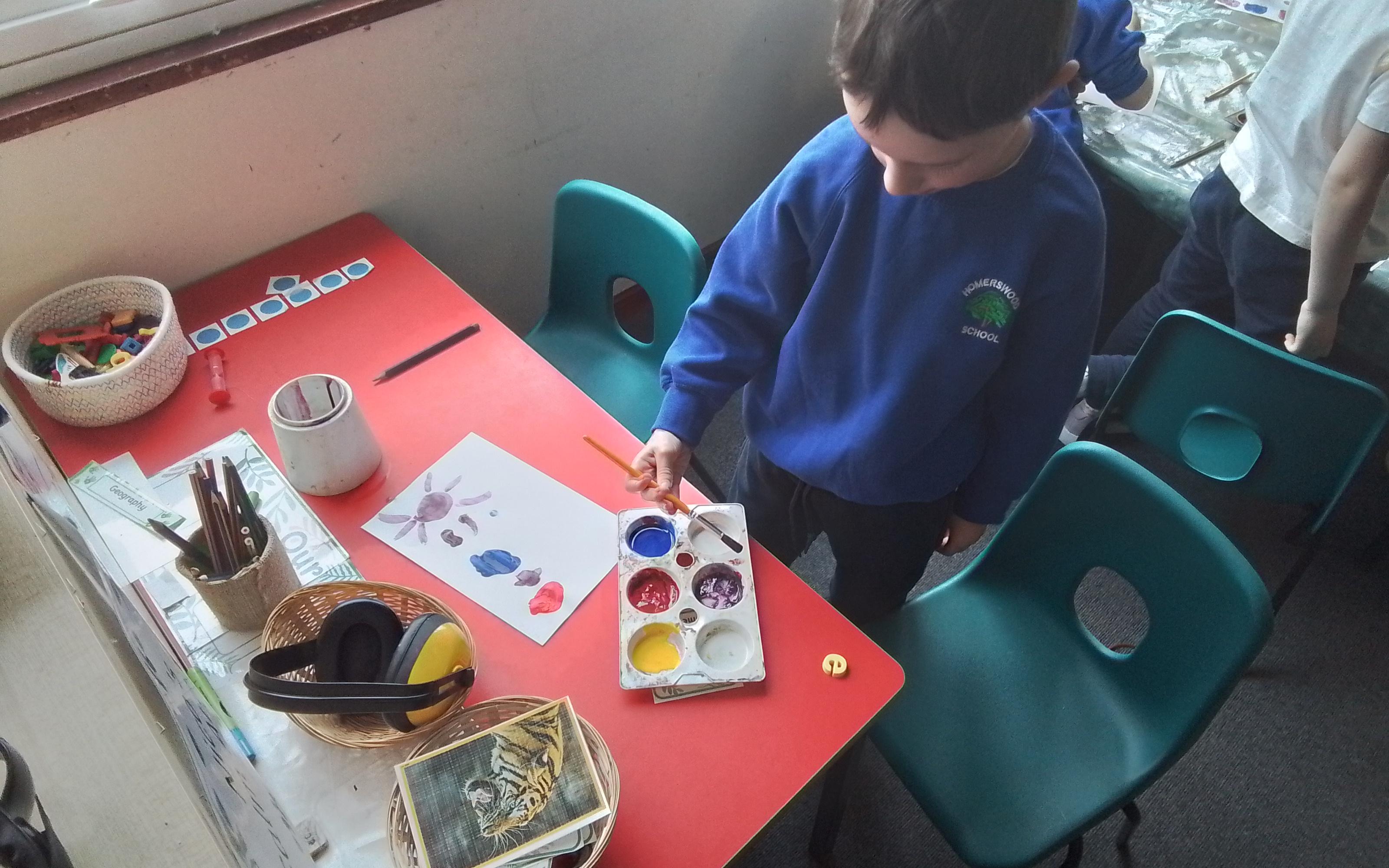 Year 1 have been exploring colour mixing this week. Here they are mixing their primary colours to create secondary colours.