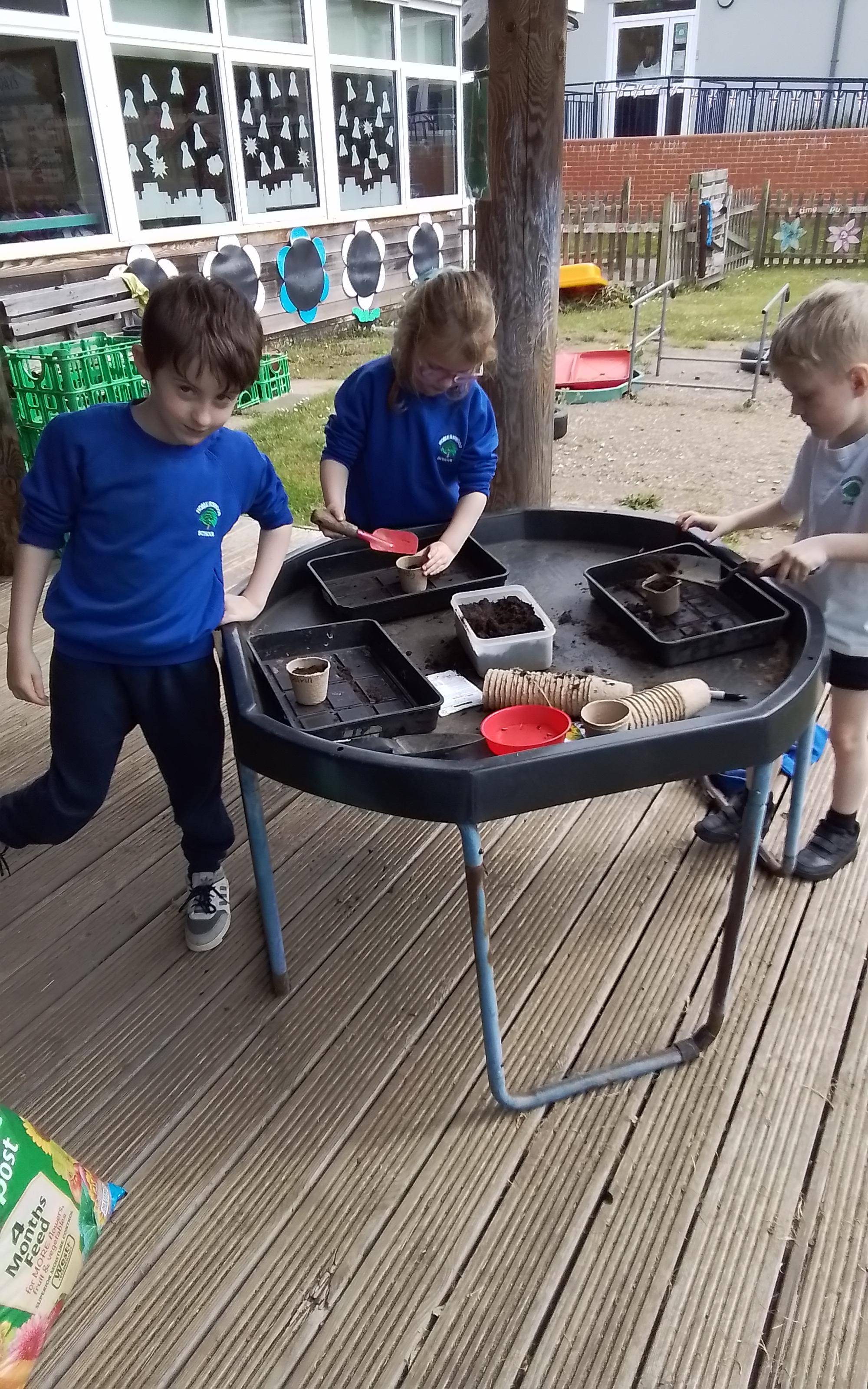 Science - Planting our very own sunflowers. We have been watering them each day and have them placed in the sunshine to help them to grow.