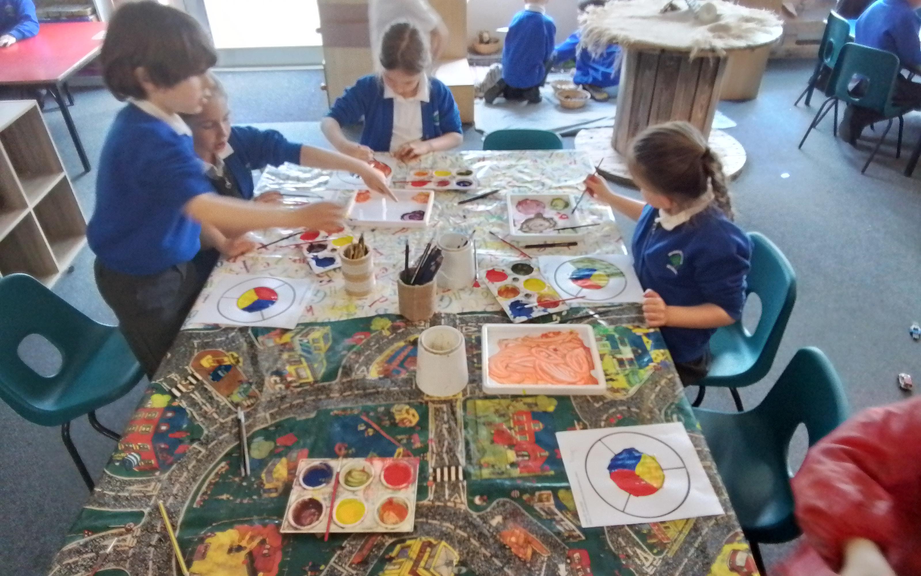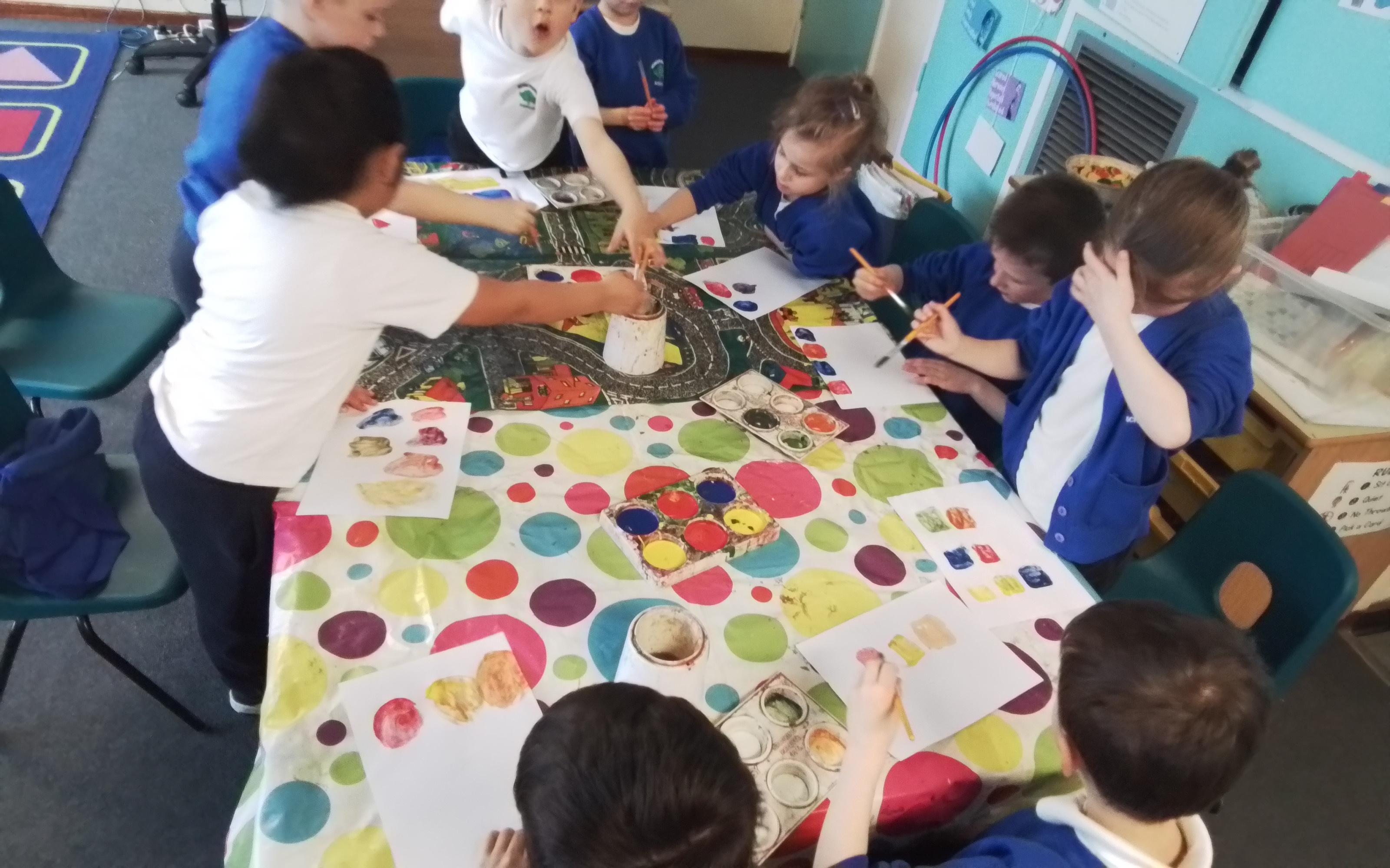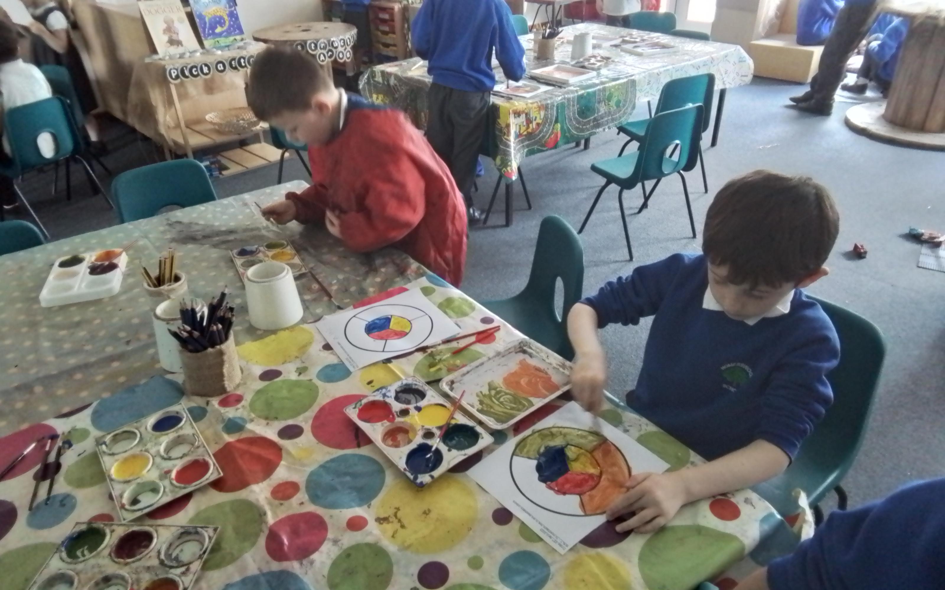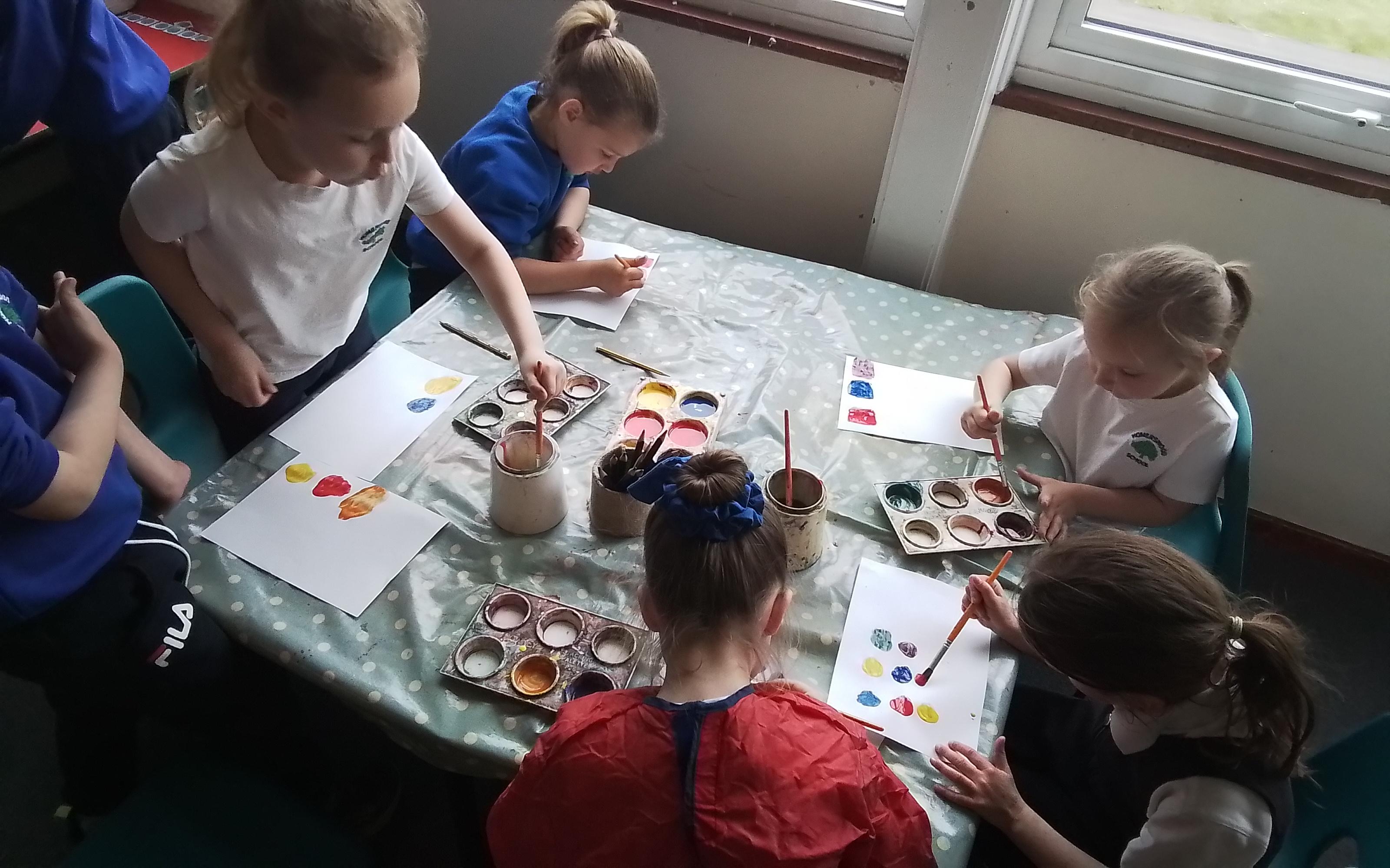 Art - Investigating mixing primary colours to make secondary colours.
