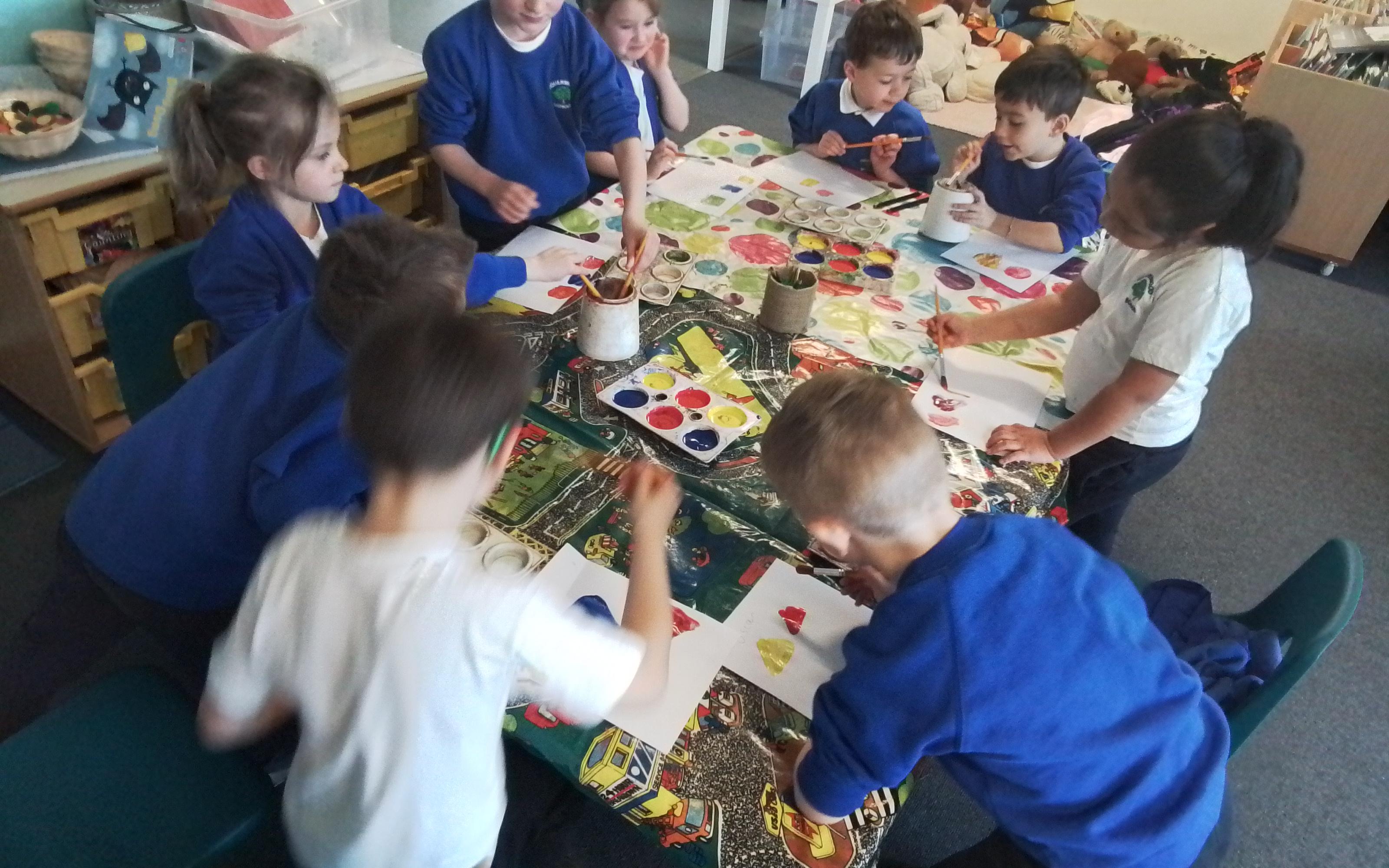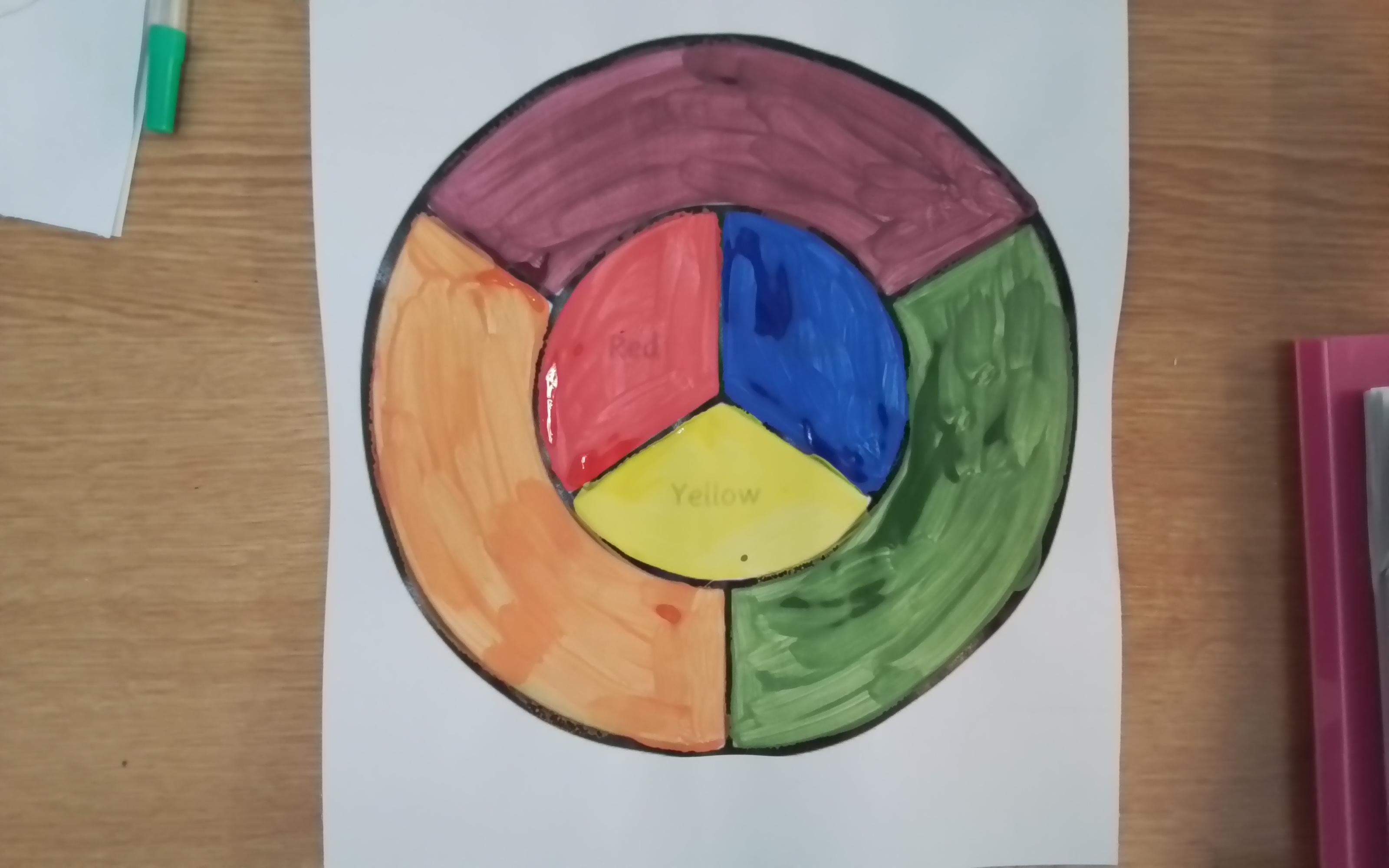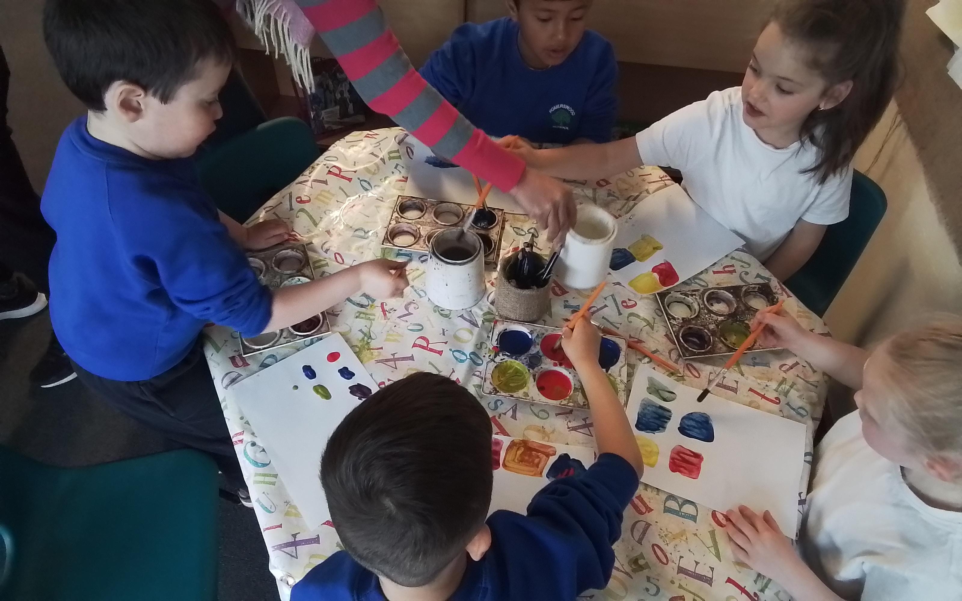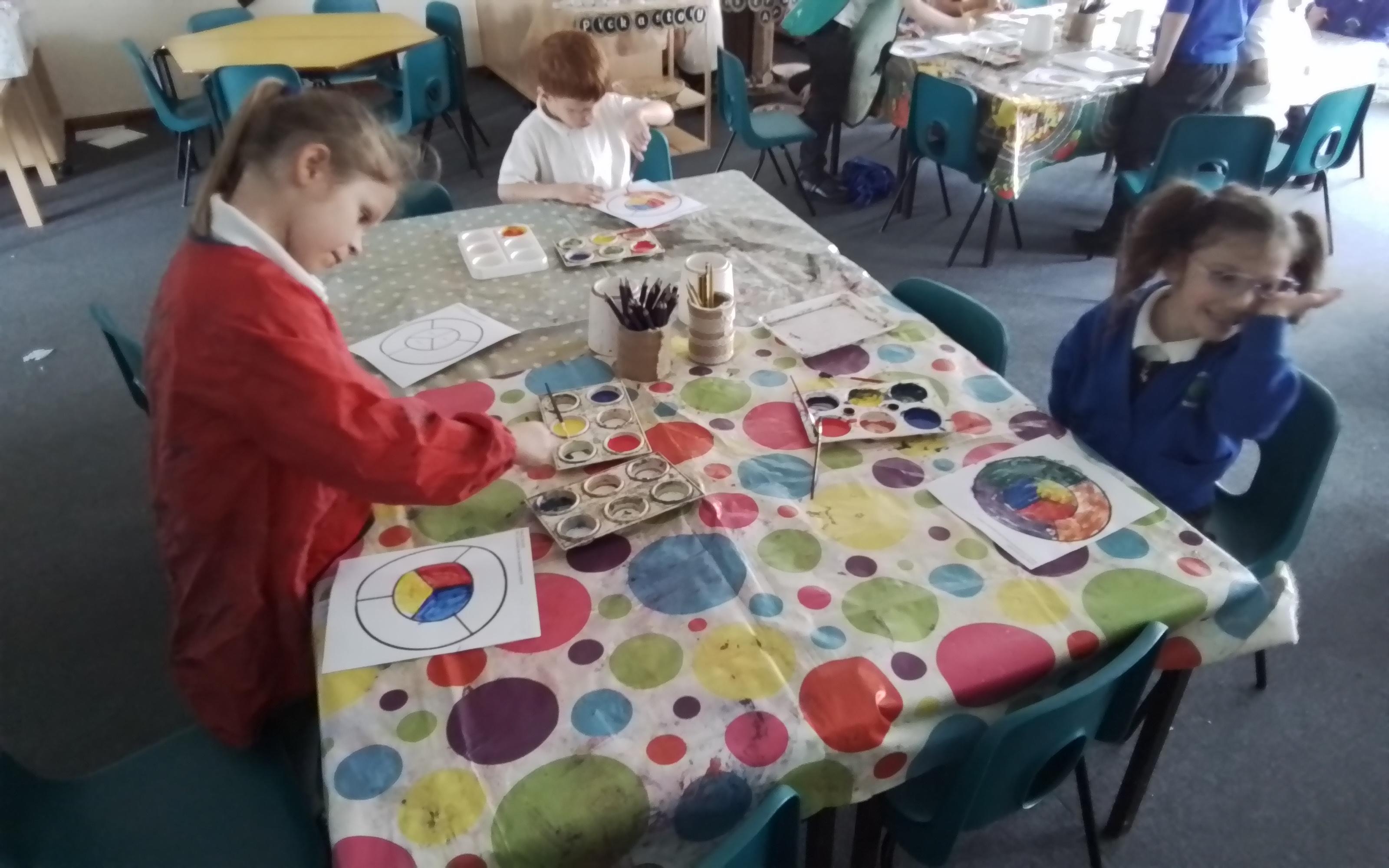 Art - Investigating mixing primary colours to make secondary colours.