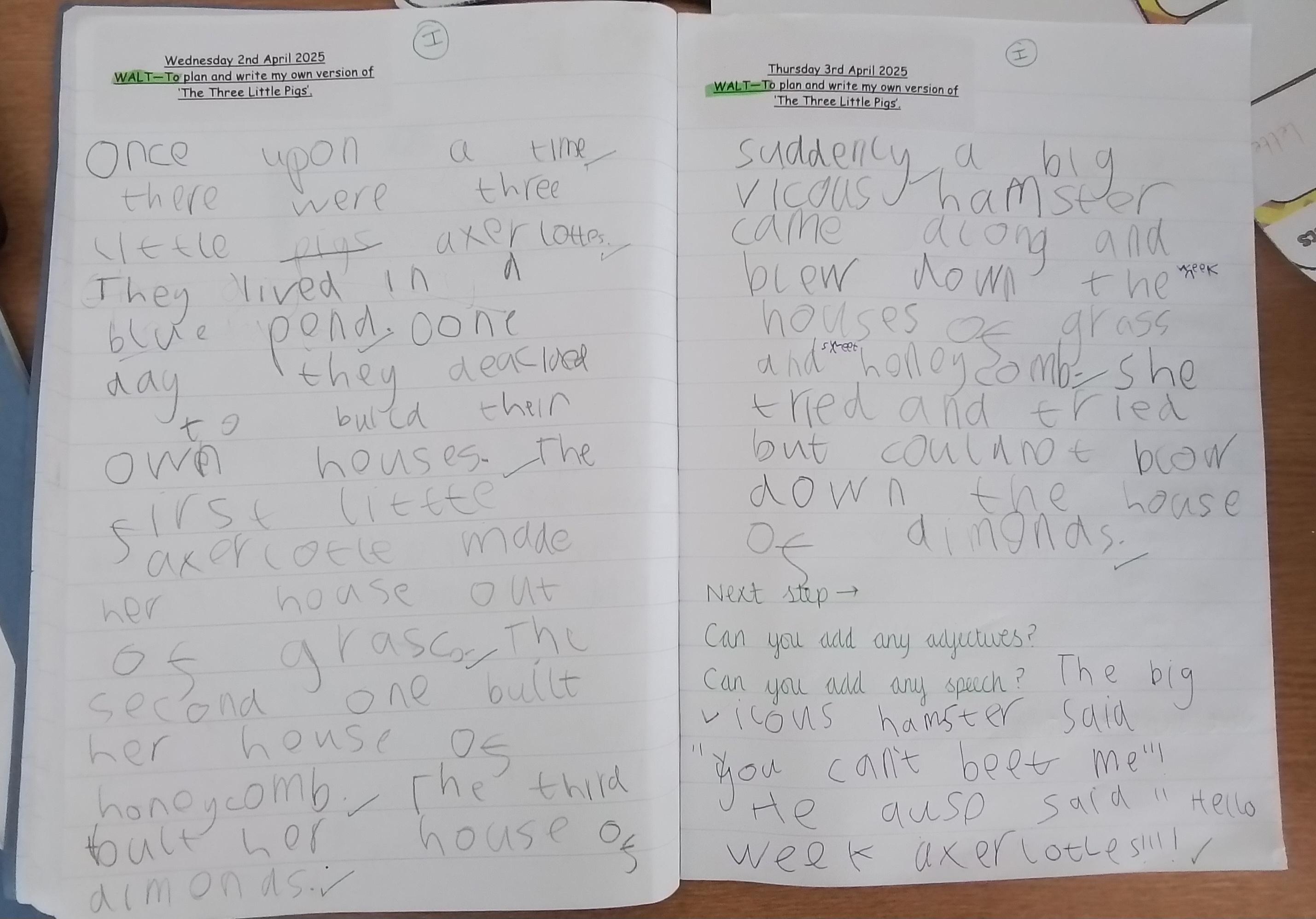 English - Writing our own version of 'The Three Little Pigs'. We are so proud of all of the children in Year 1! Over the last three days, they have worked so hard on writing their very own version of the story by changing the characters and house materials. What a lovely way to end the Spring term! Well done, Year 1!