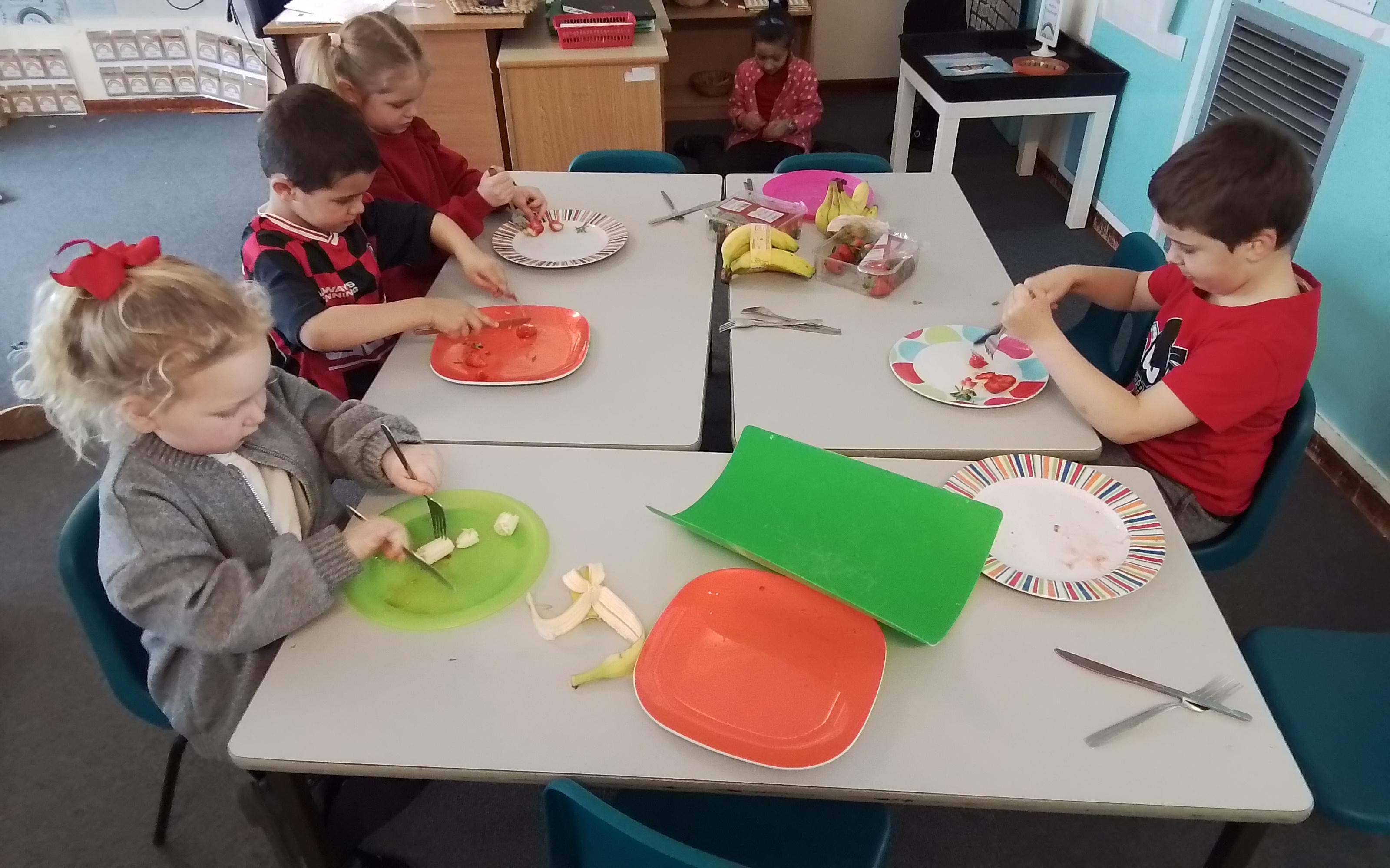 DT - Practicing food preparation skills ready to make our smoothies.