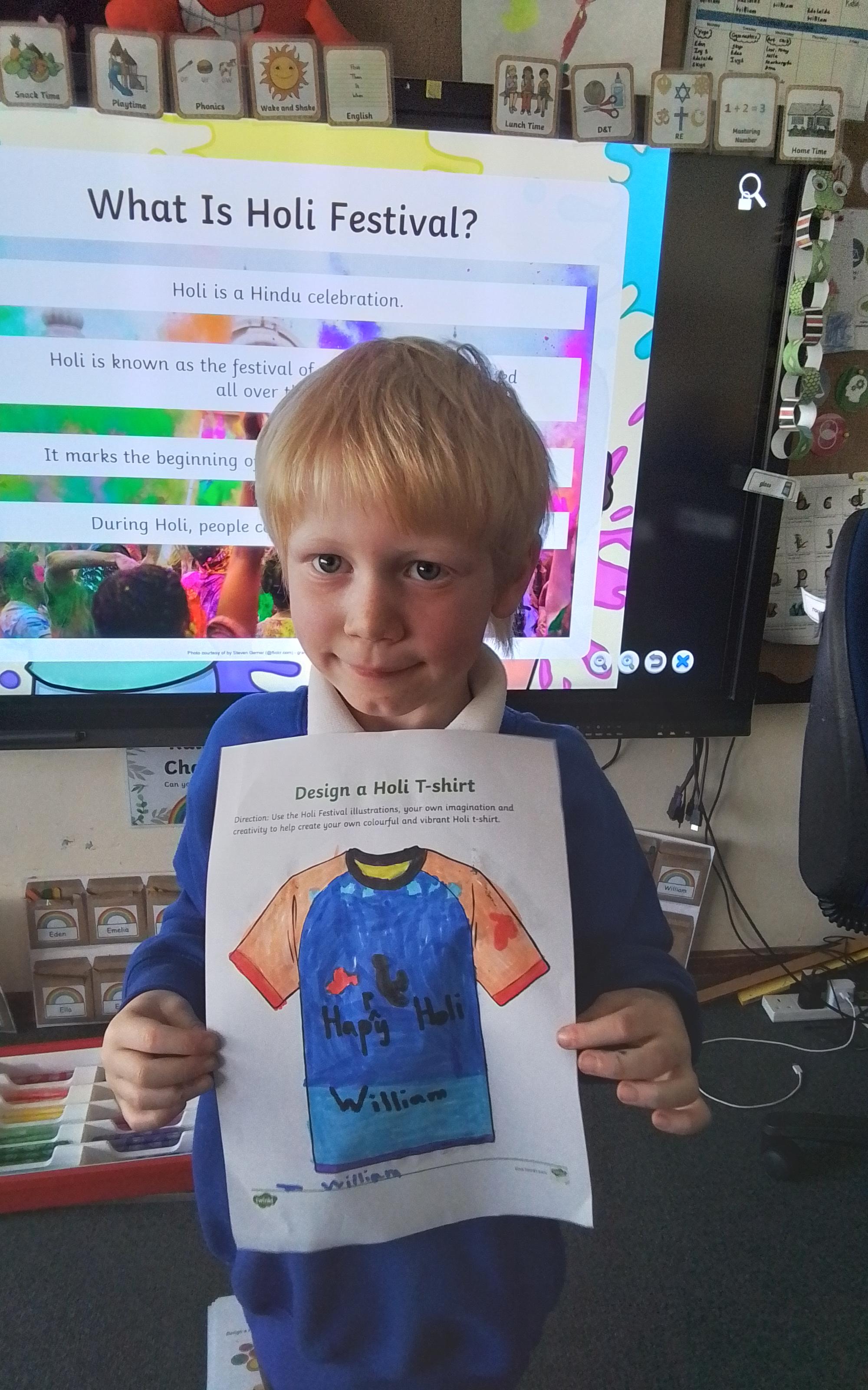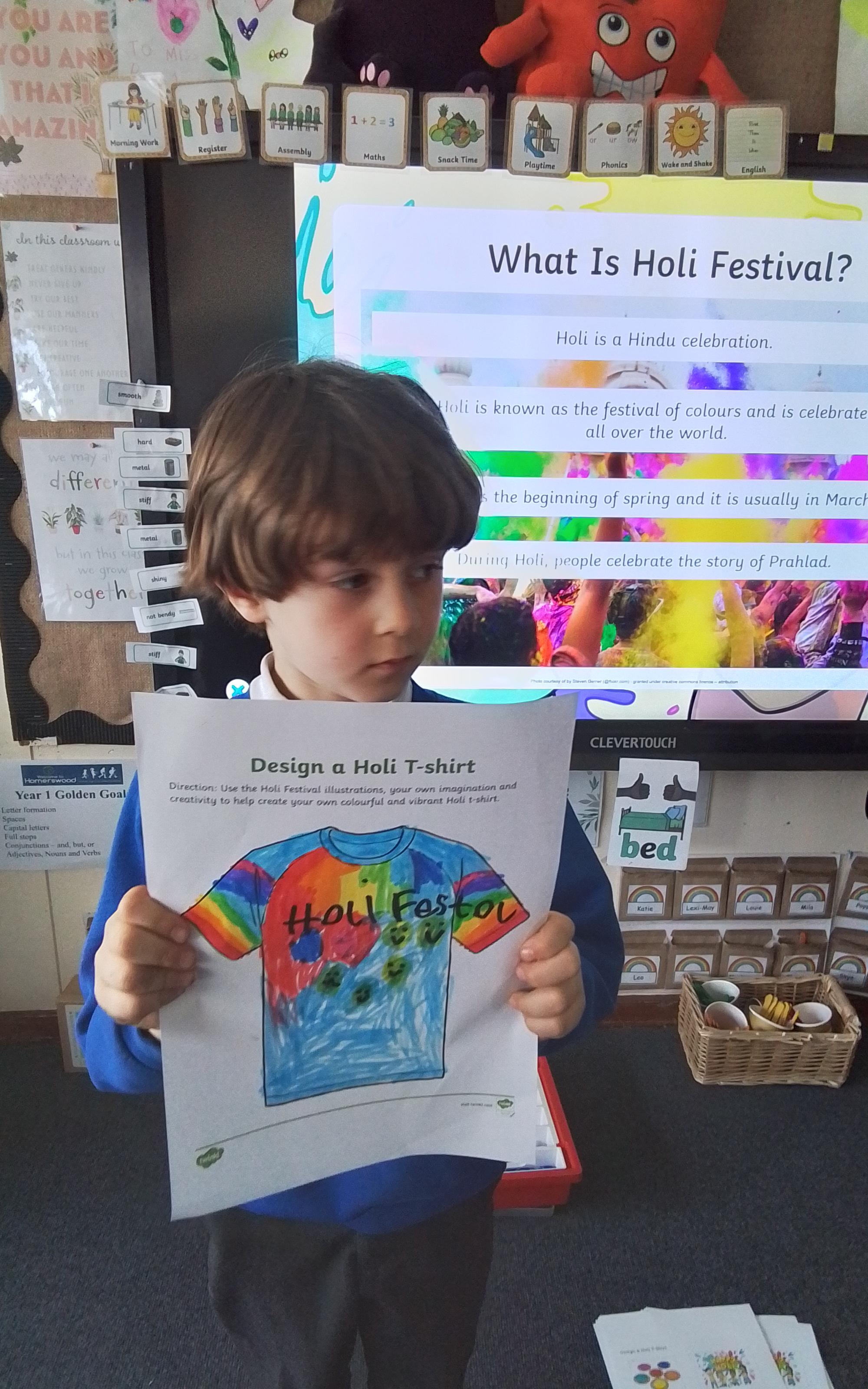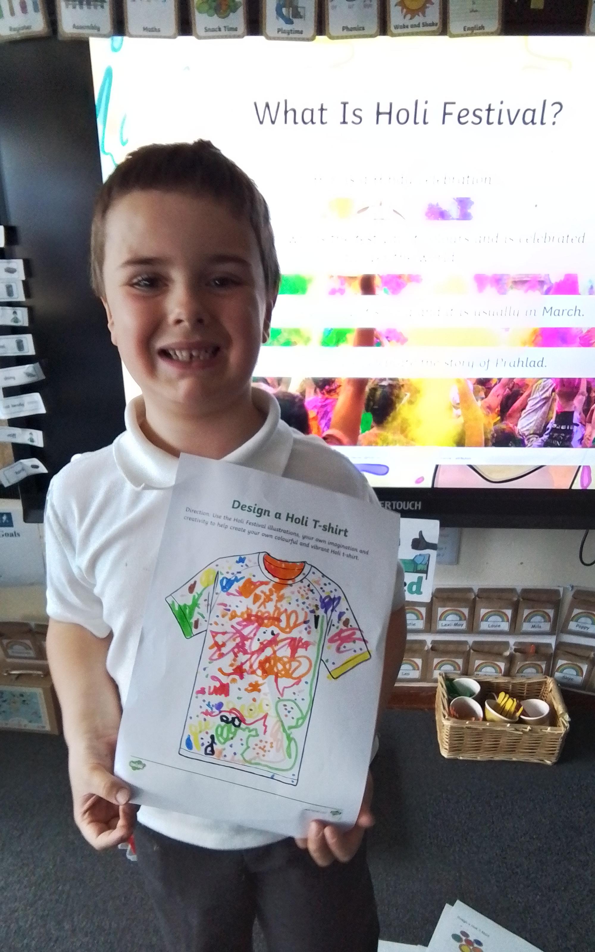 Holi Festival - Today we explored the Hindu Holi Festival. We listened to the story of Prahlad, discovered how Holi is celebrated and designed our very own Holi t-shirts. Year 1 were very proud of their creations!