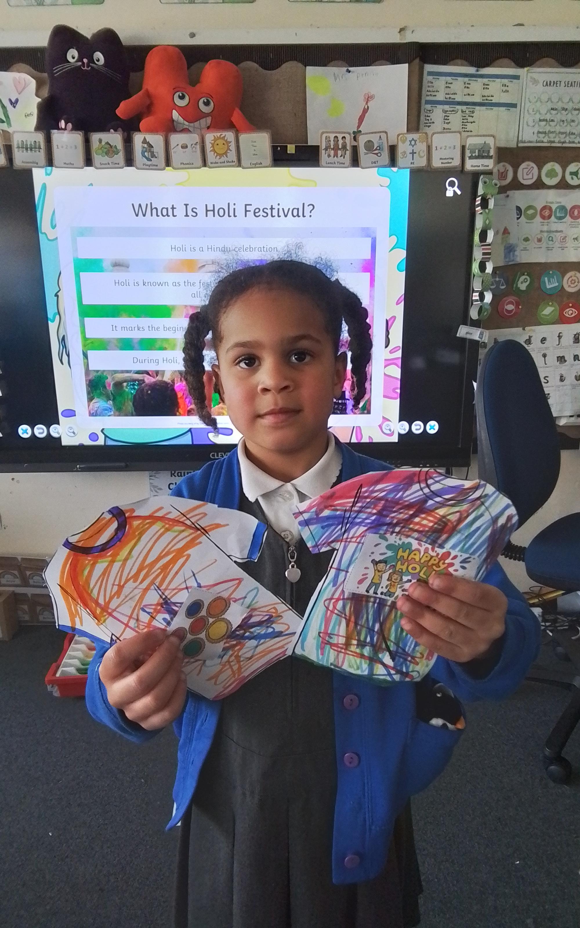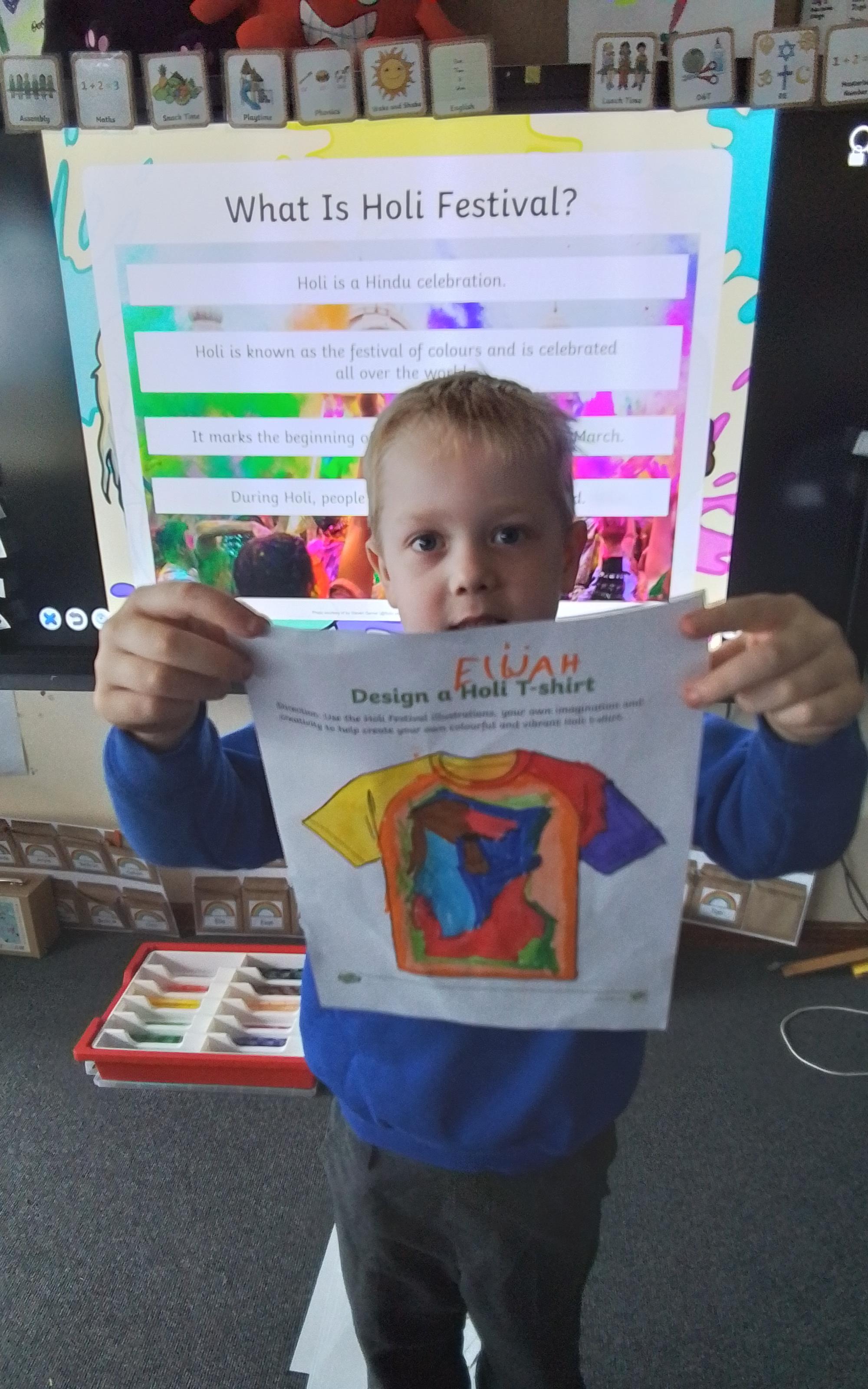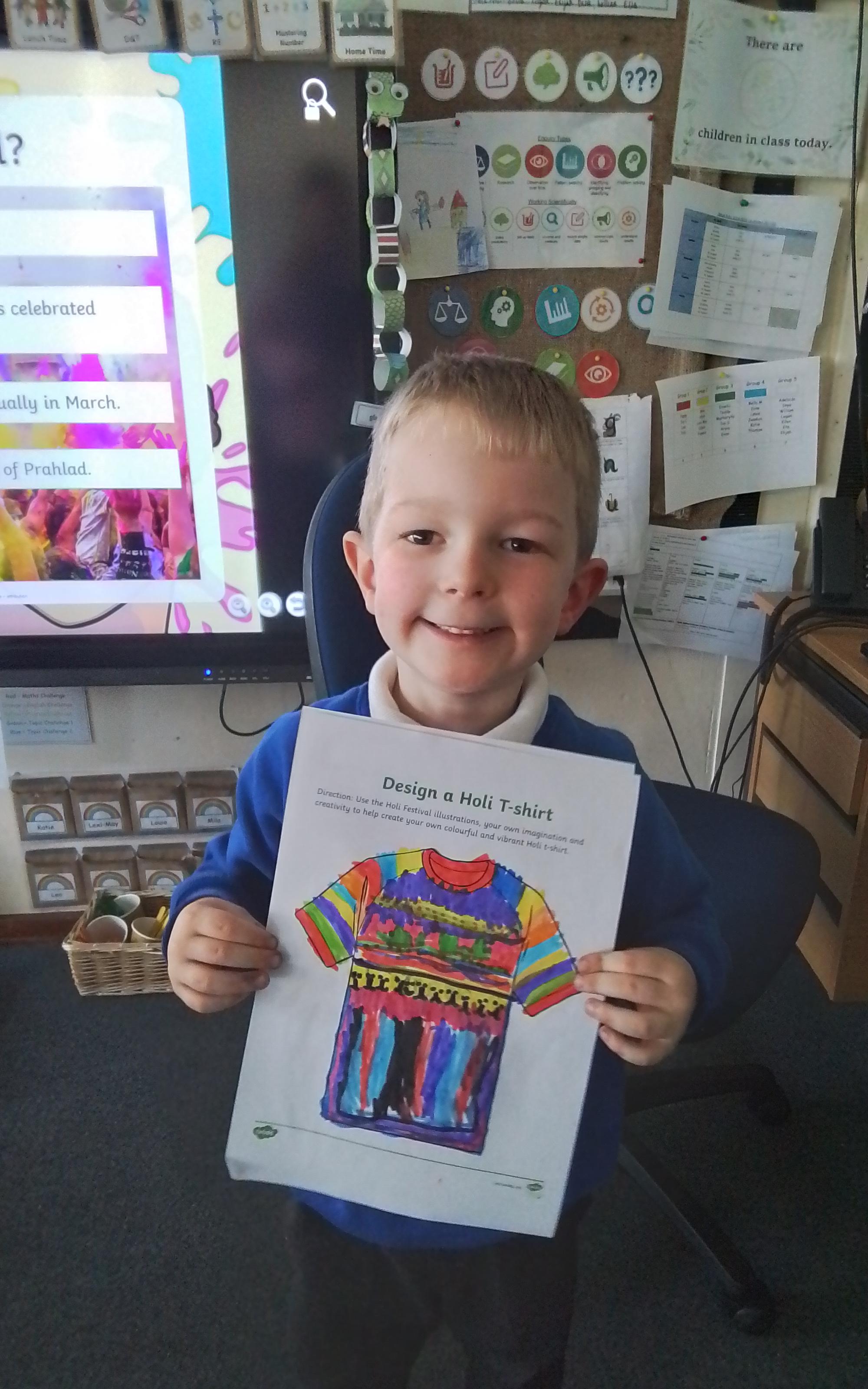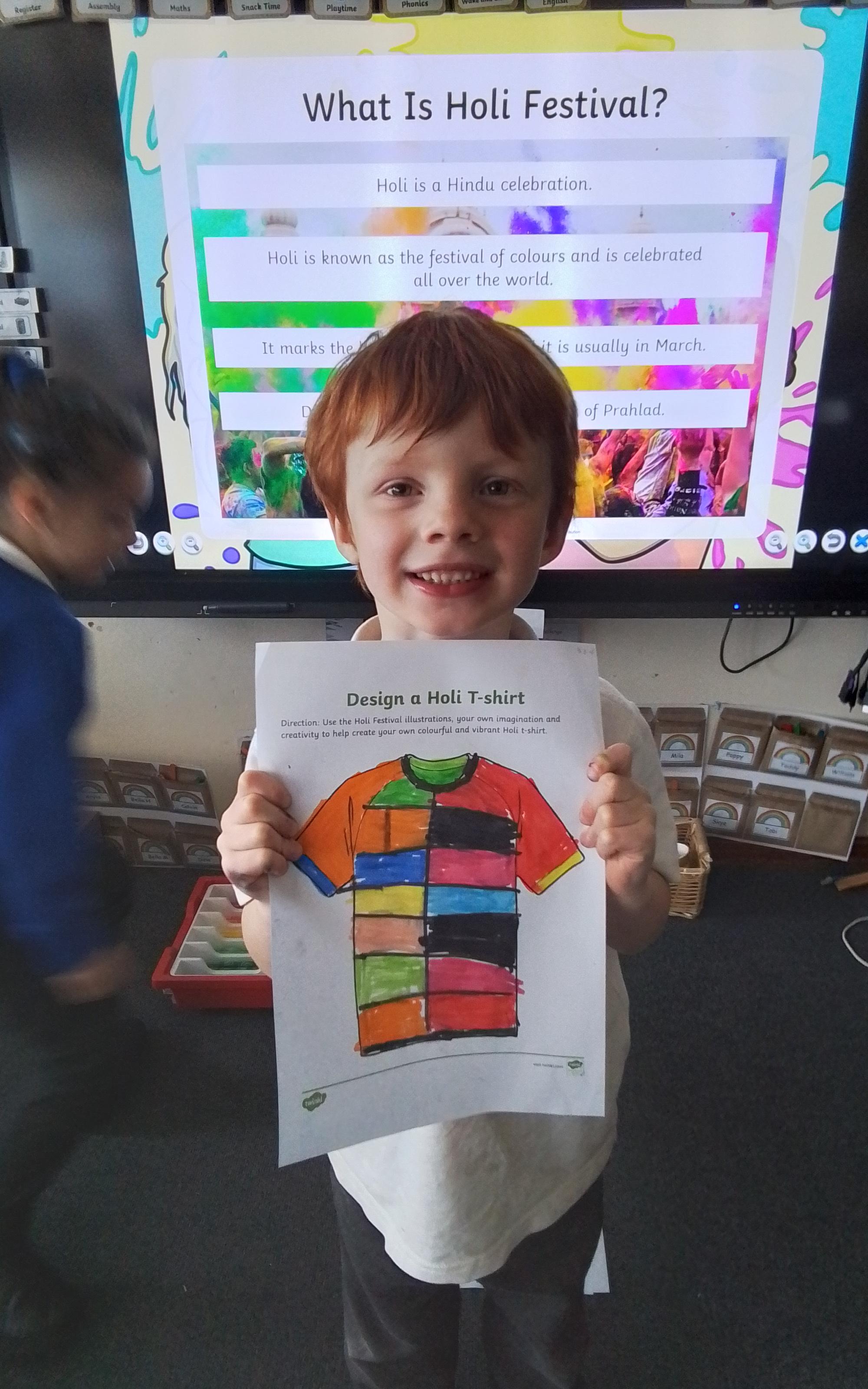 Holi Festival - Today we explored the Hindu Holi Festival. We listened to the story of Prahlad, discovered how Holi is celebrated and designed our very own Holi t-shirts. Year 1 were very proud of their creations!