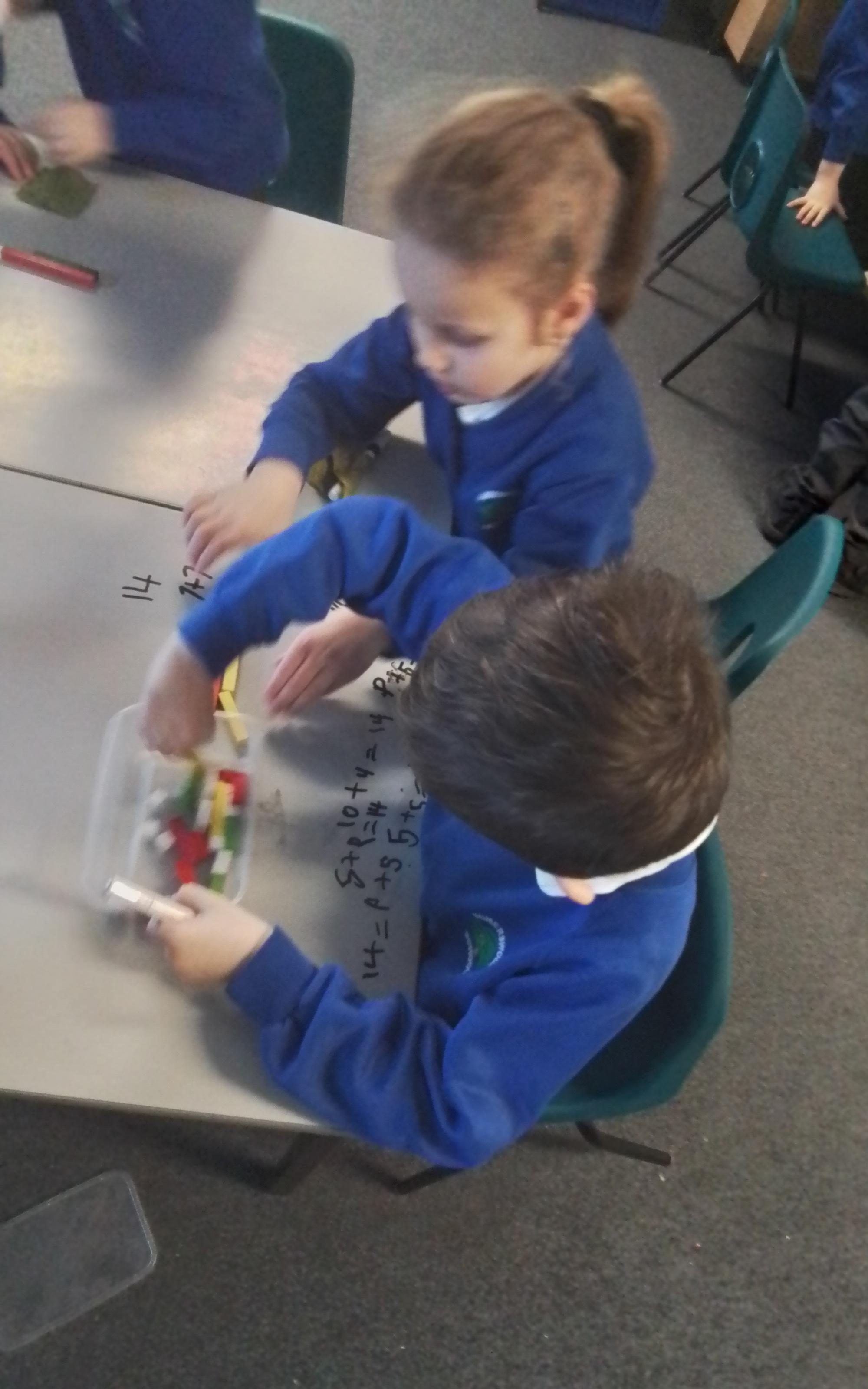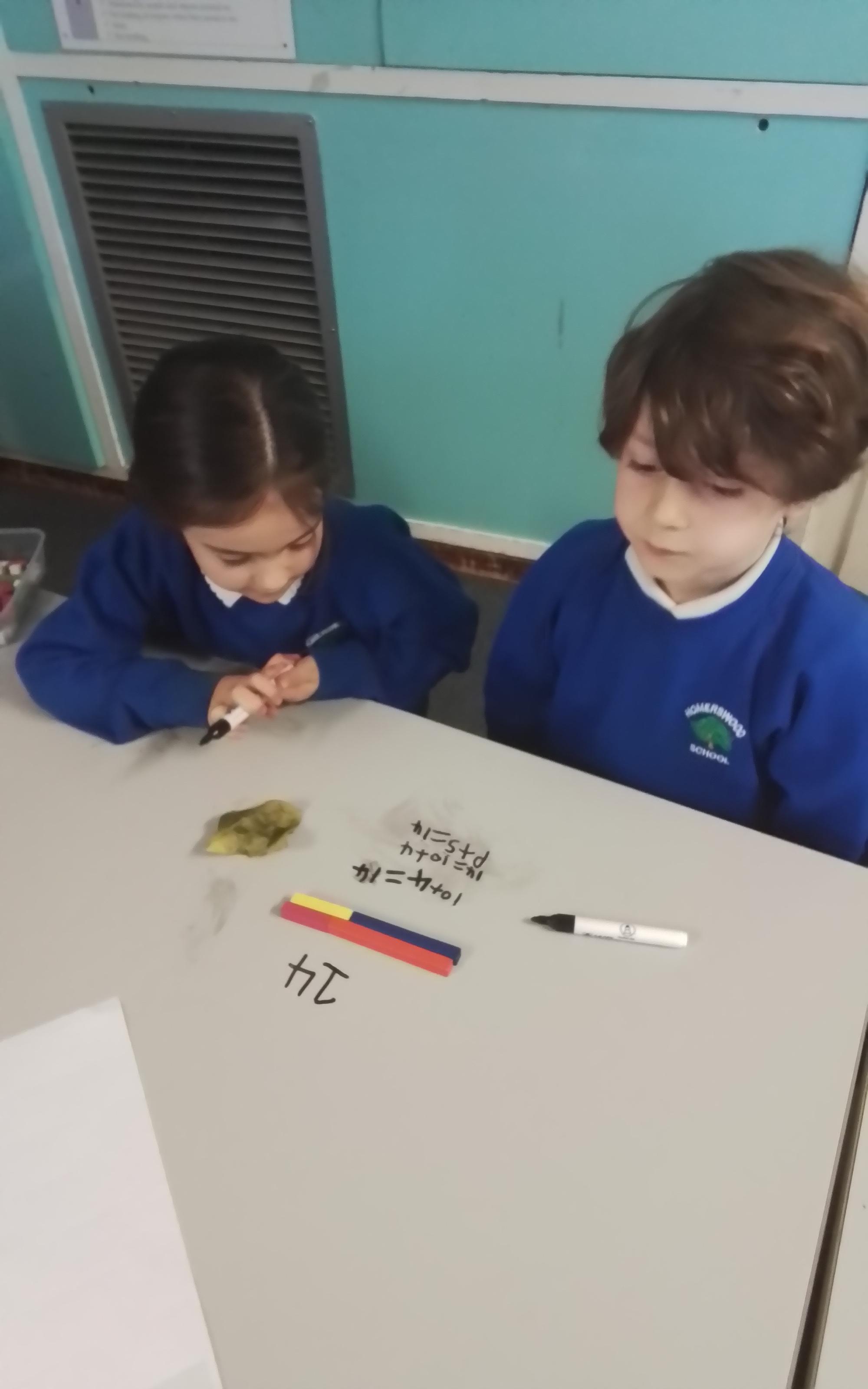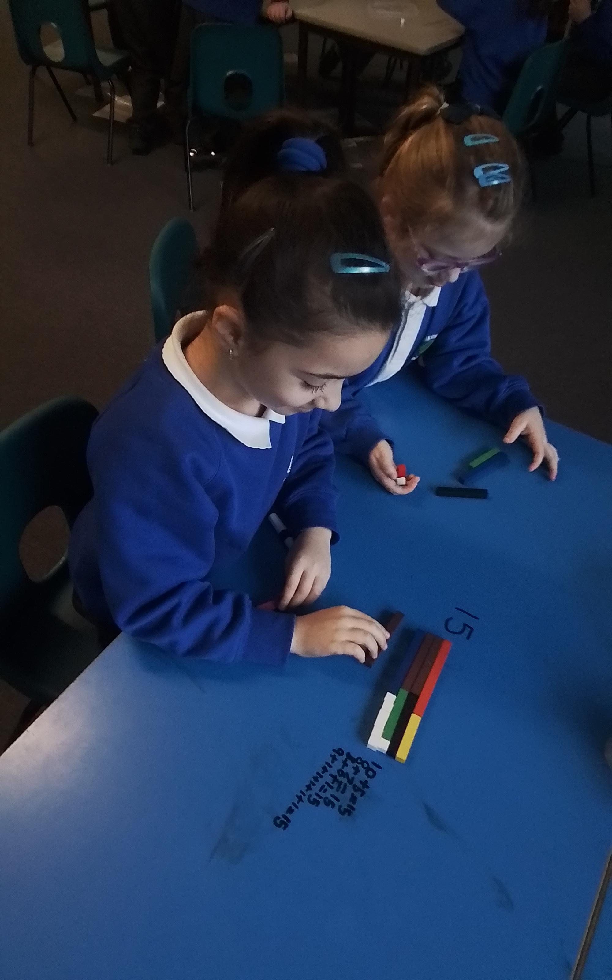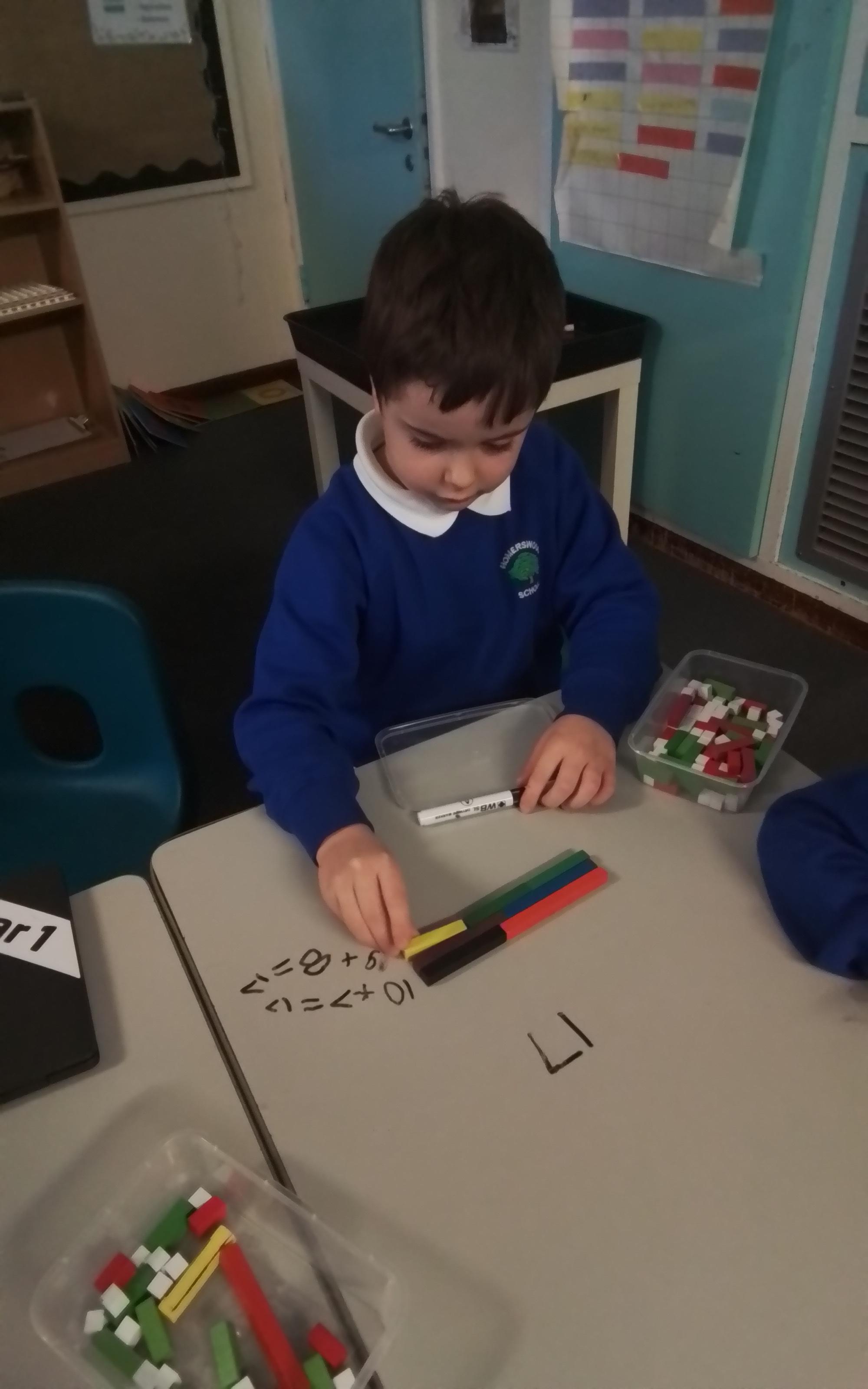 In Maths we have been experimenting with the different ways we can create numbers between 10-20 using cuisenaire rods.