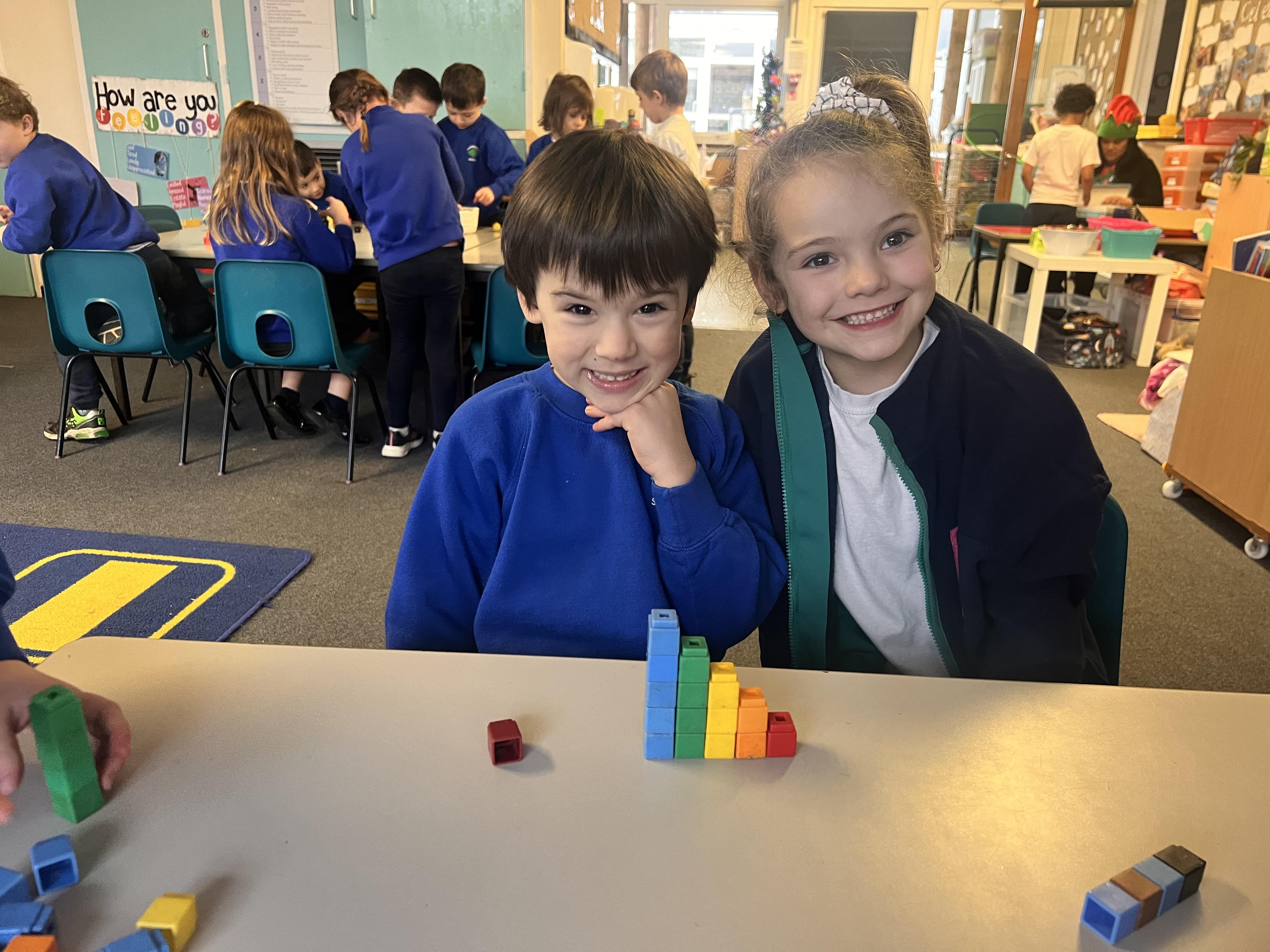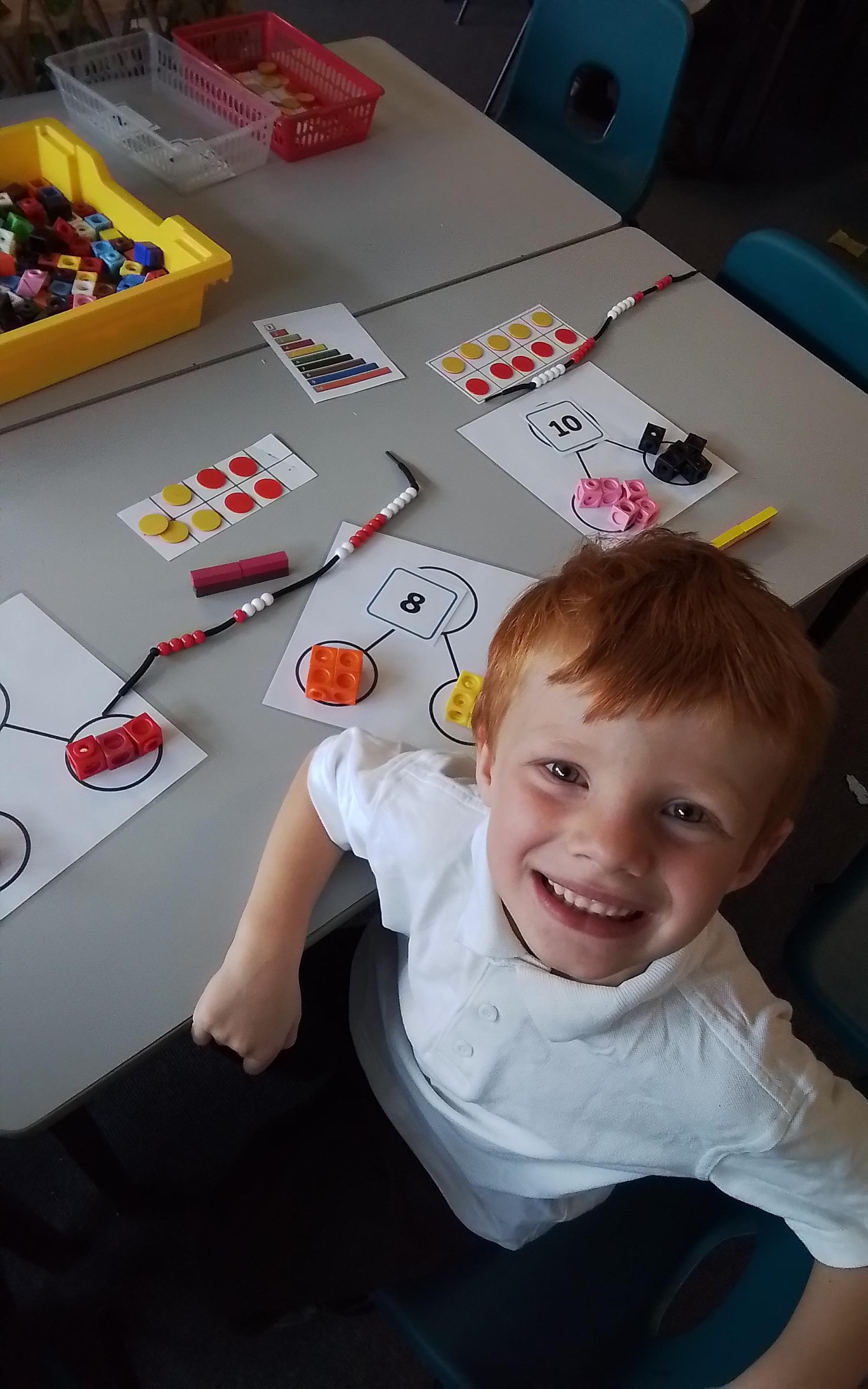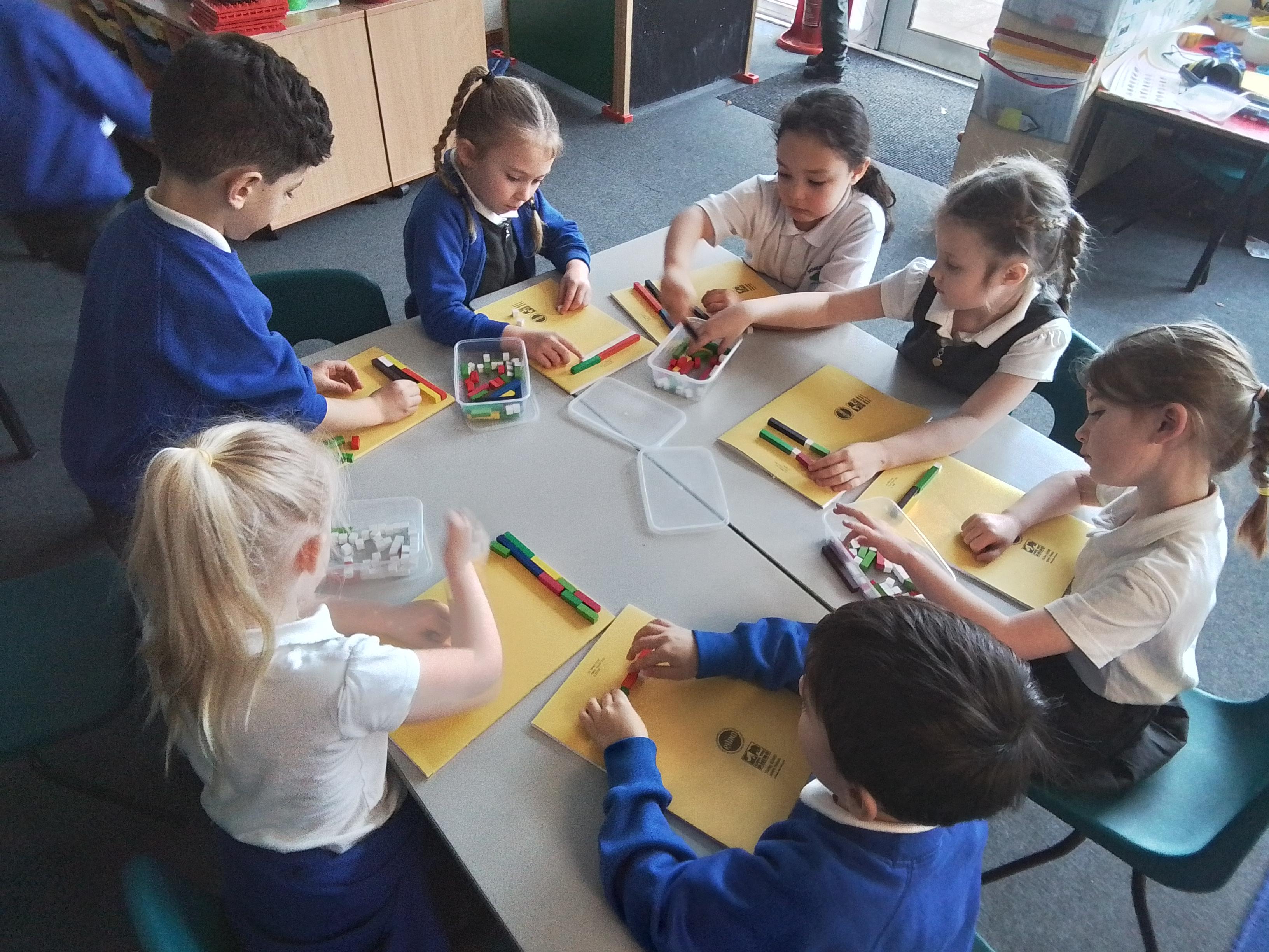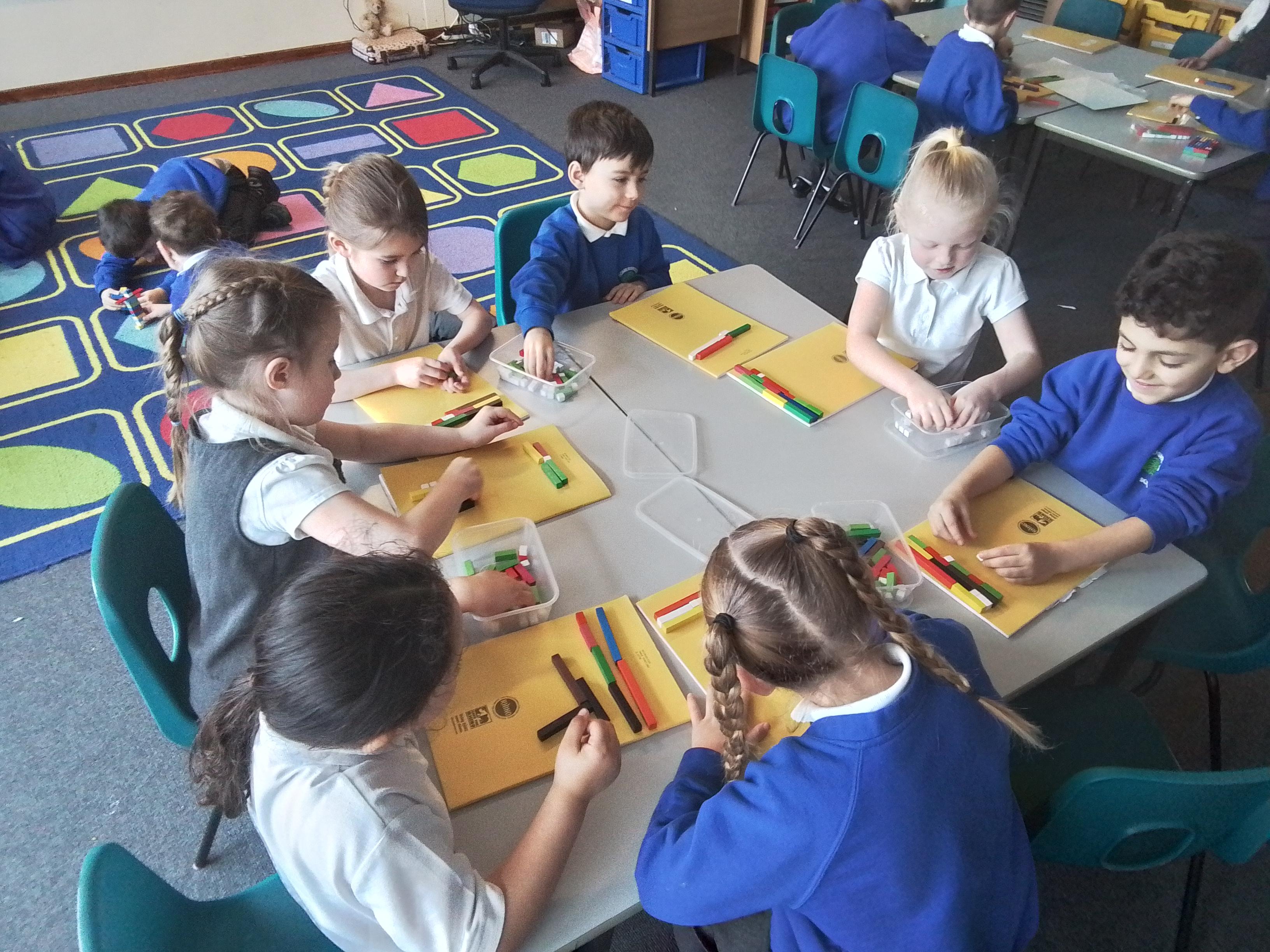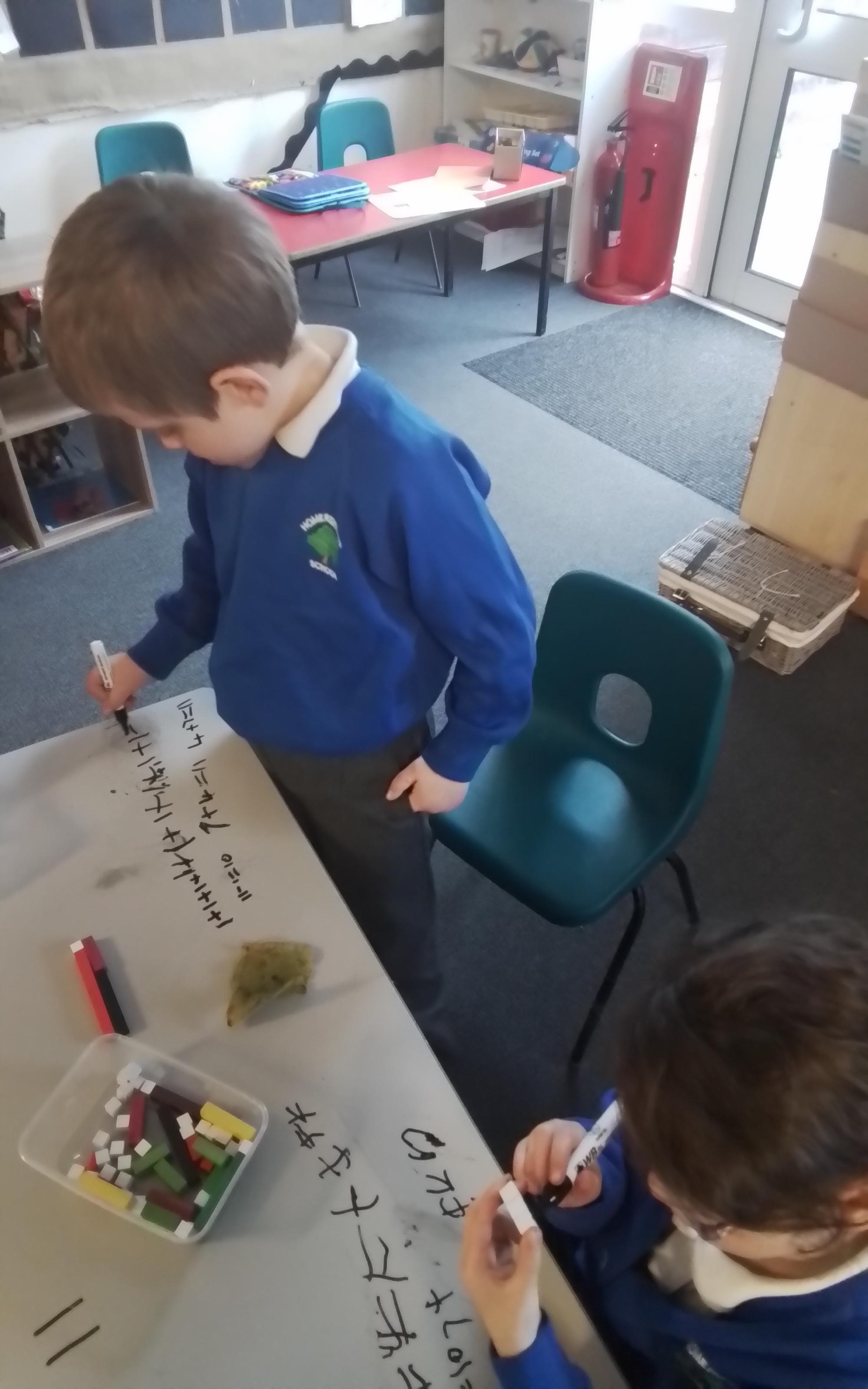 In Maths we have been experimenting with the different ways we can create numbers between 10-20 using cuisenaire rods.