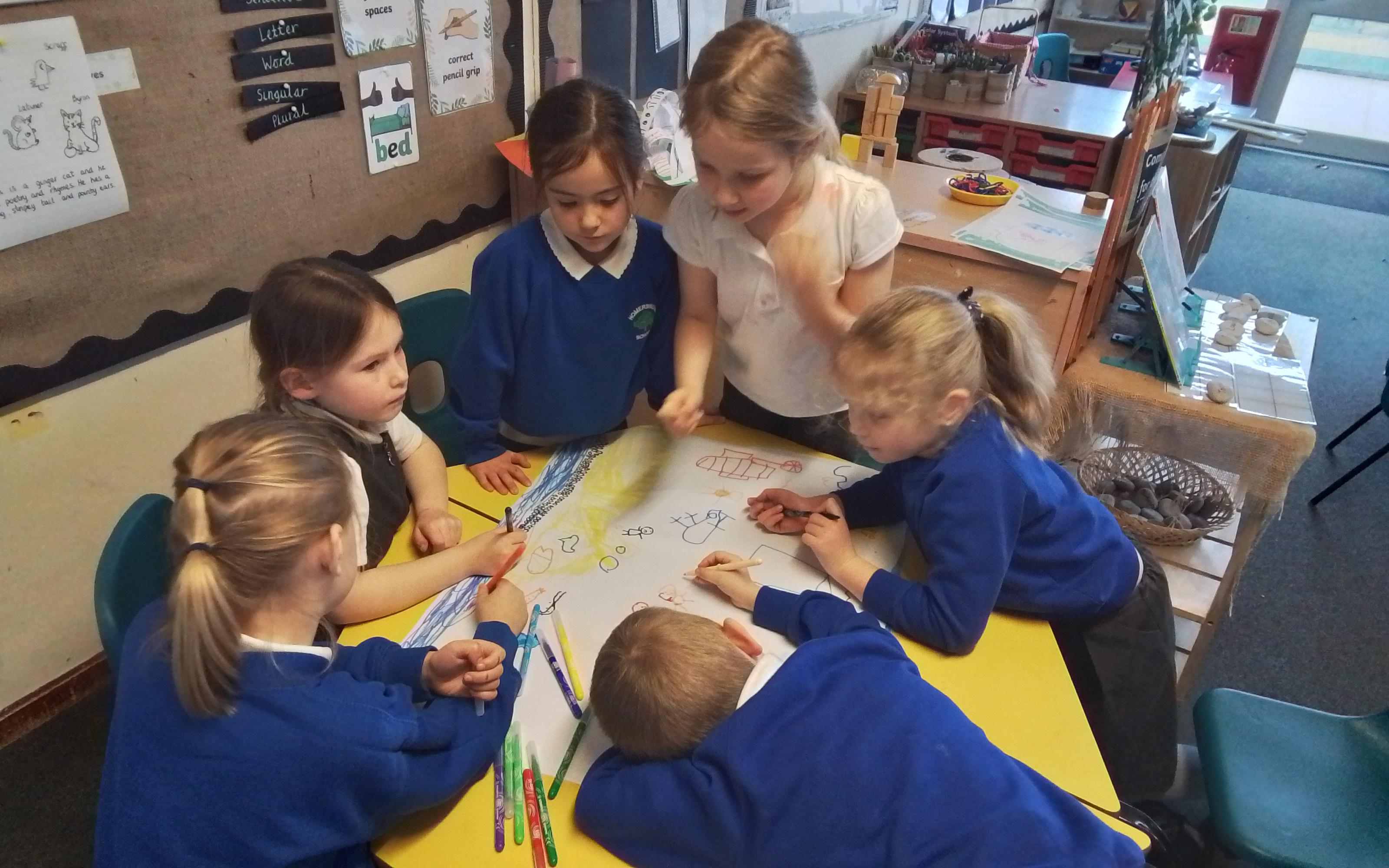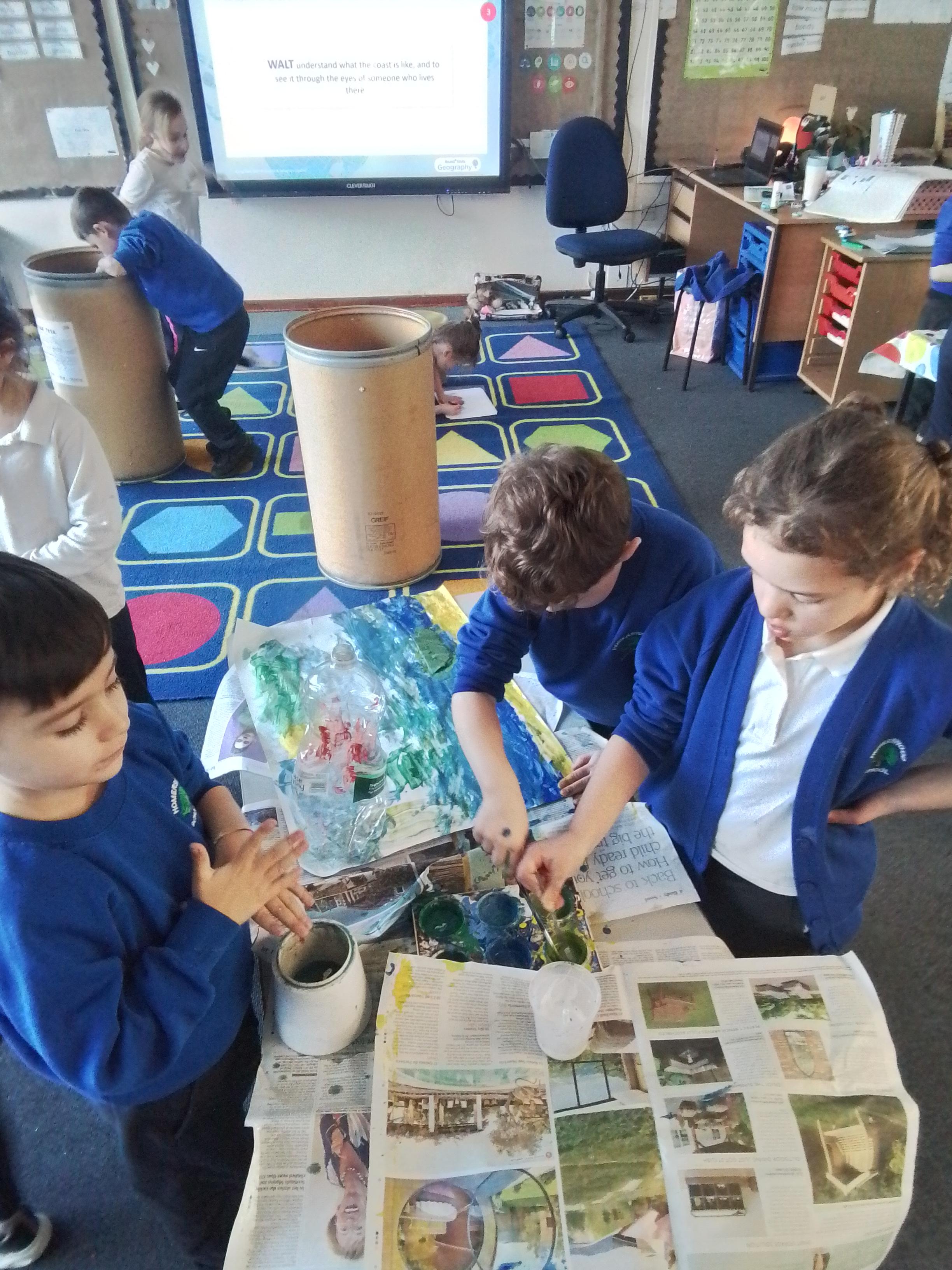 Geography - Creating group drawings of the seaside.