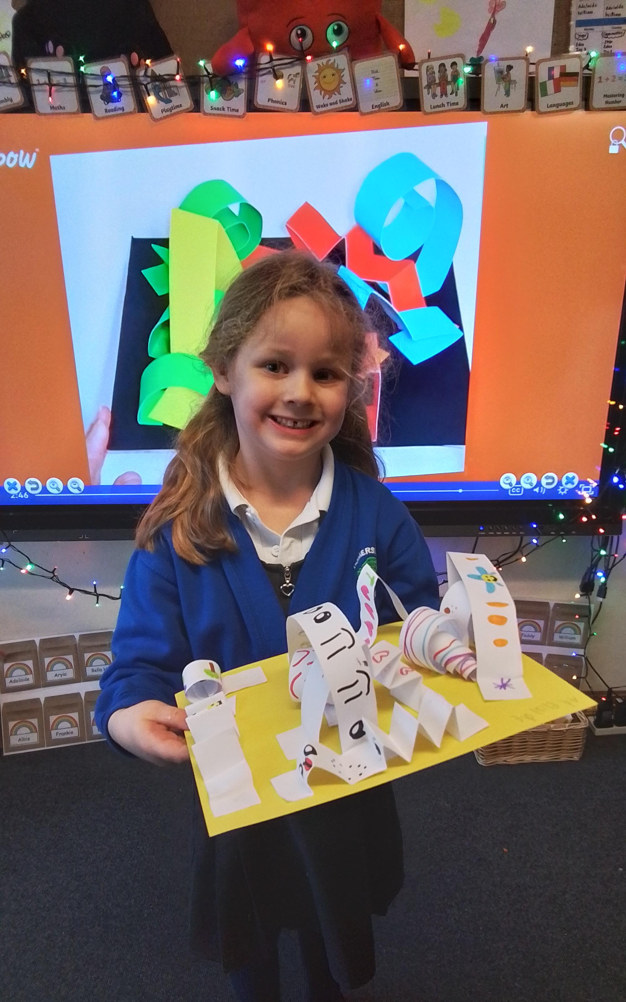 Art - Meet our spider called Barnaby! Year 1 are so proud of their final art piece this half term. They worked collaboratively to create a final 3D sculpture of a spider. They applied the skills they have learnt throughout the unit by rolling, bending and scrunching paper. Fantastic team work, Year 1!
