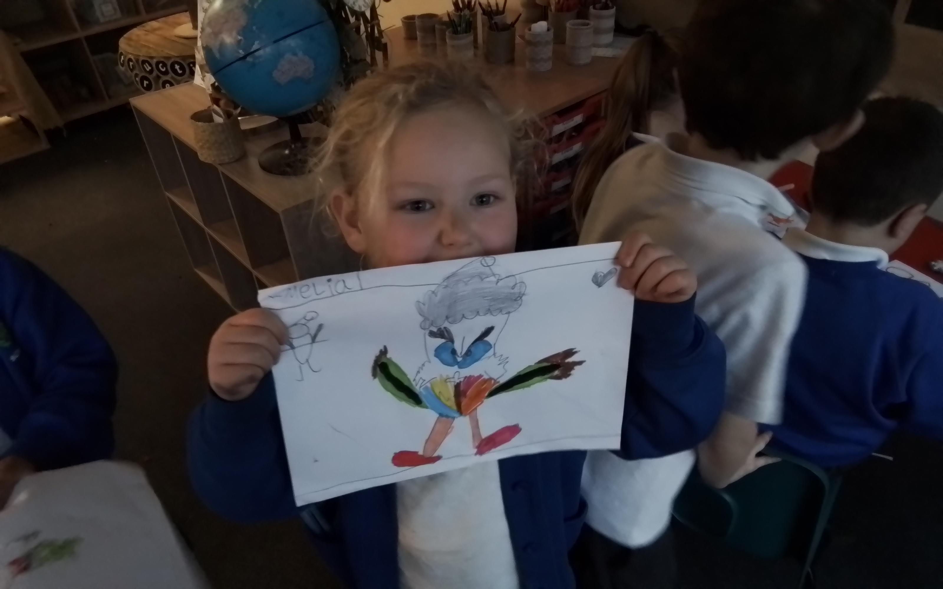 English - Drawing Club - Look at Year 1's amazing writing in Drawing Club! Today, we created a vehicle to escape a monster we created based on 'Superworm' by Julia Donaldson.