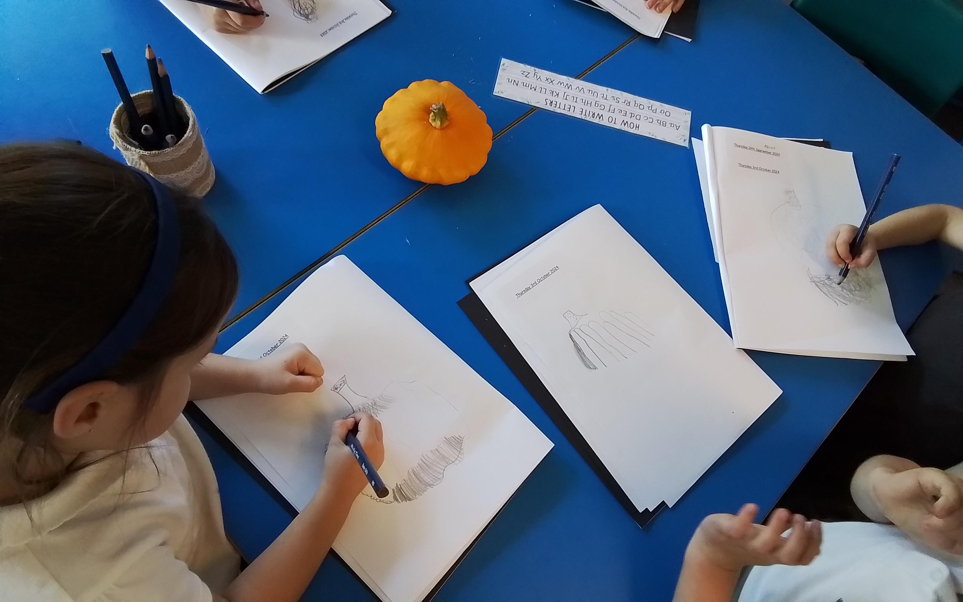 Art - We are feeling very Autumnal in Year 1! We have been creating observational drawings of pumpkins and focusing on different ways of mark making.