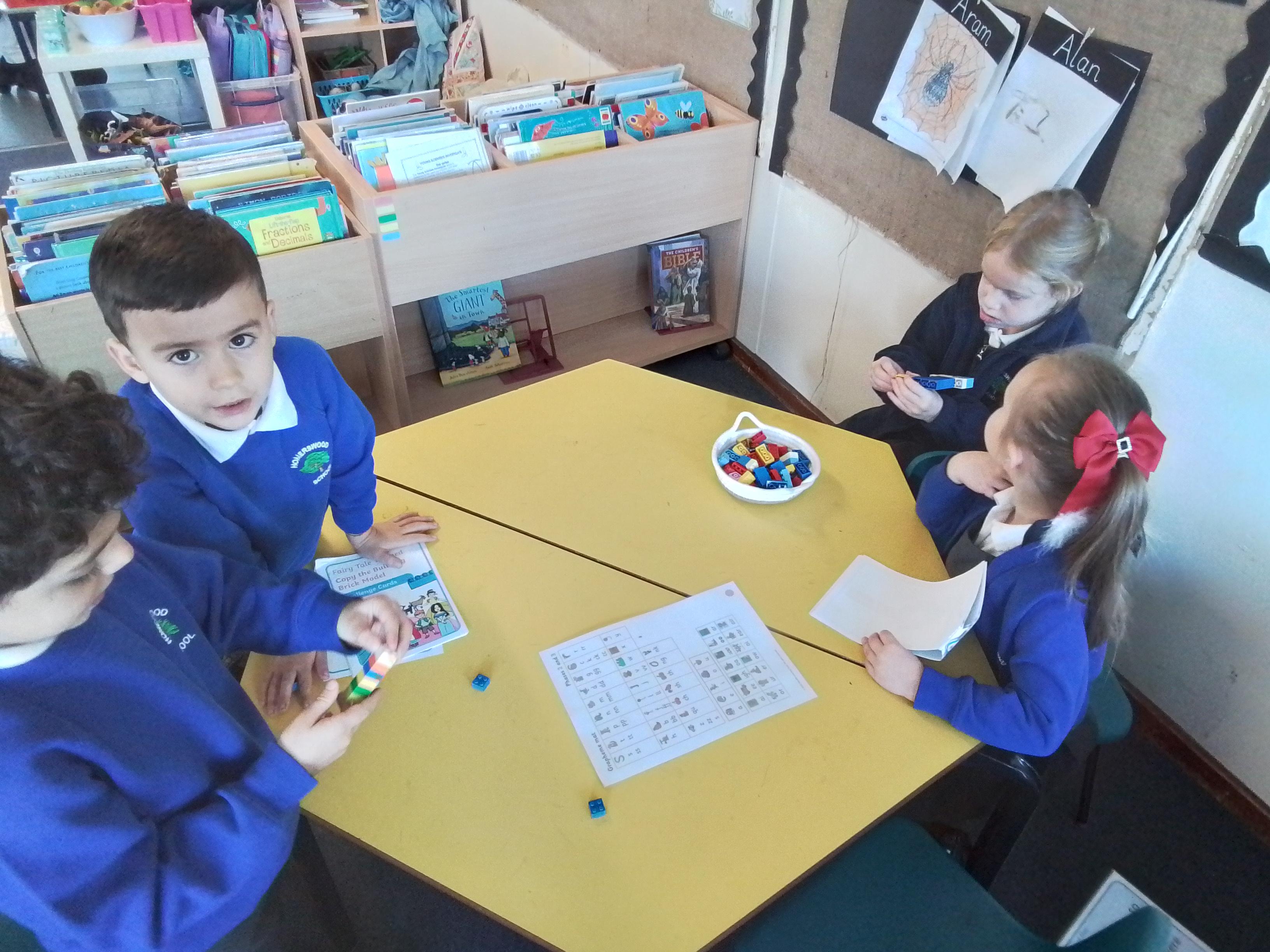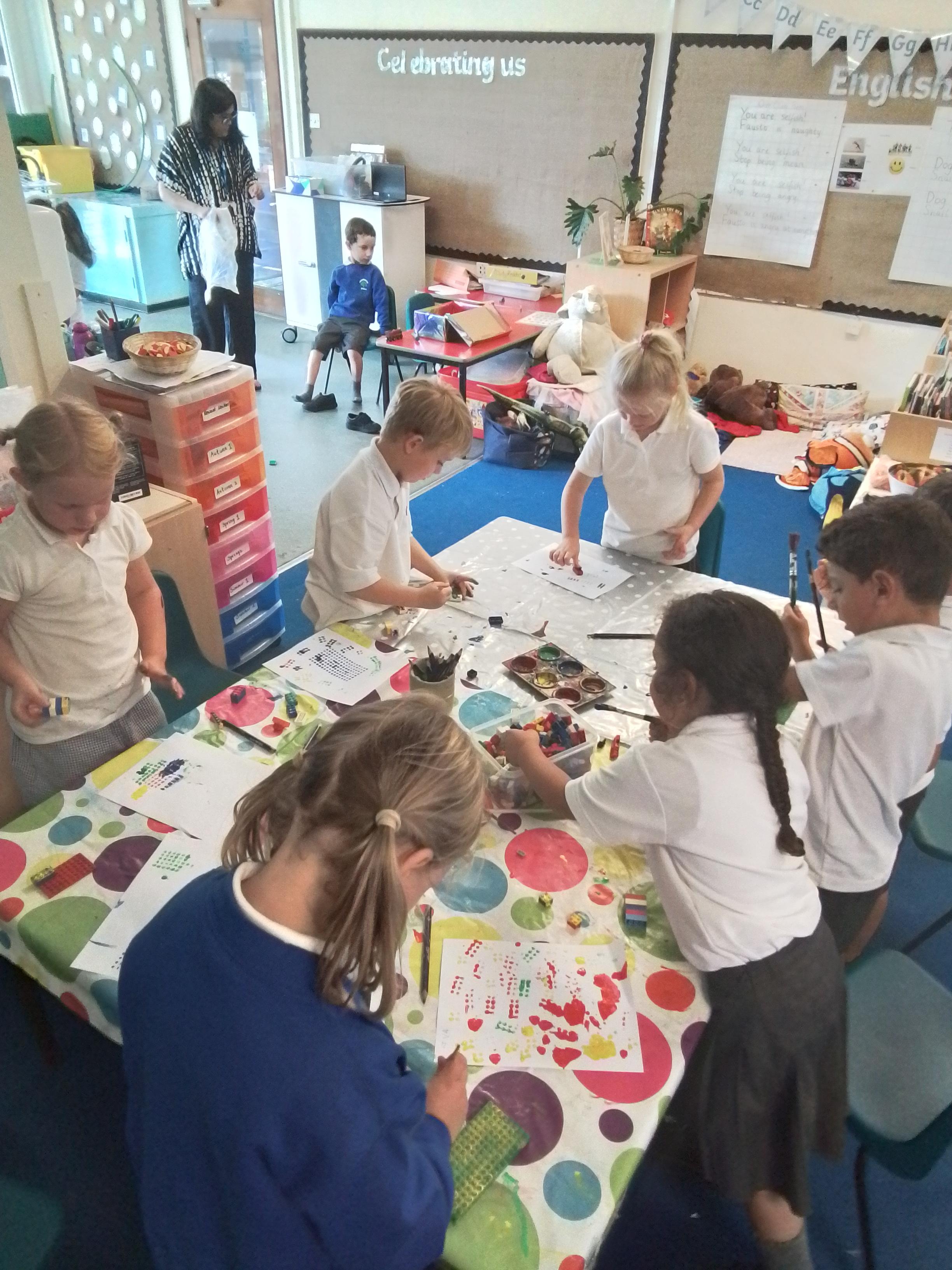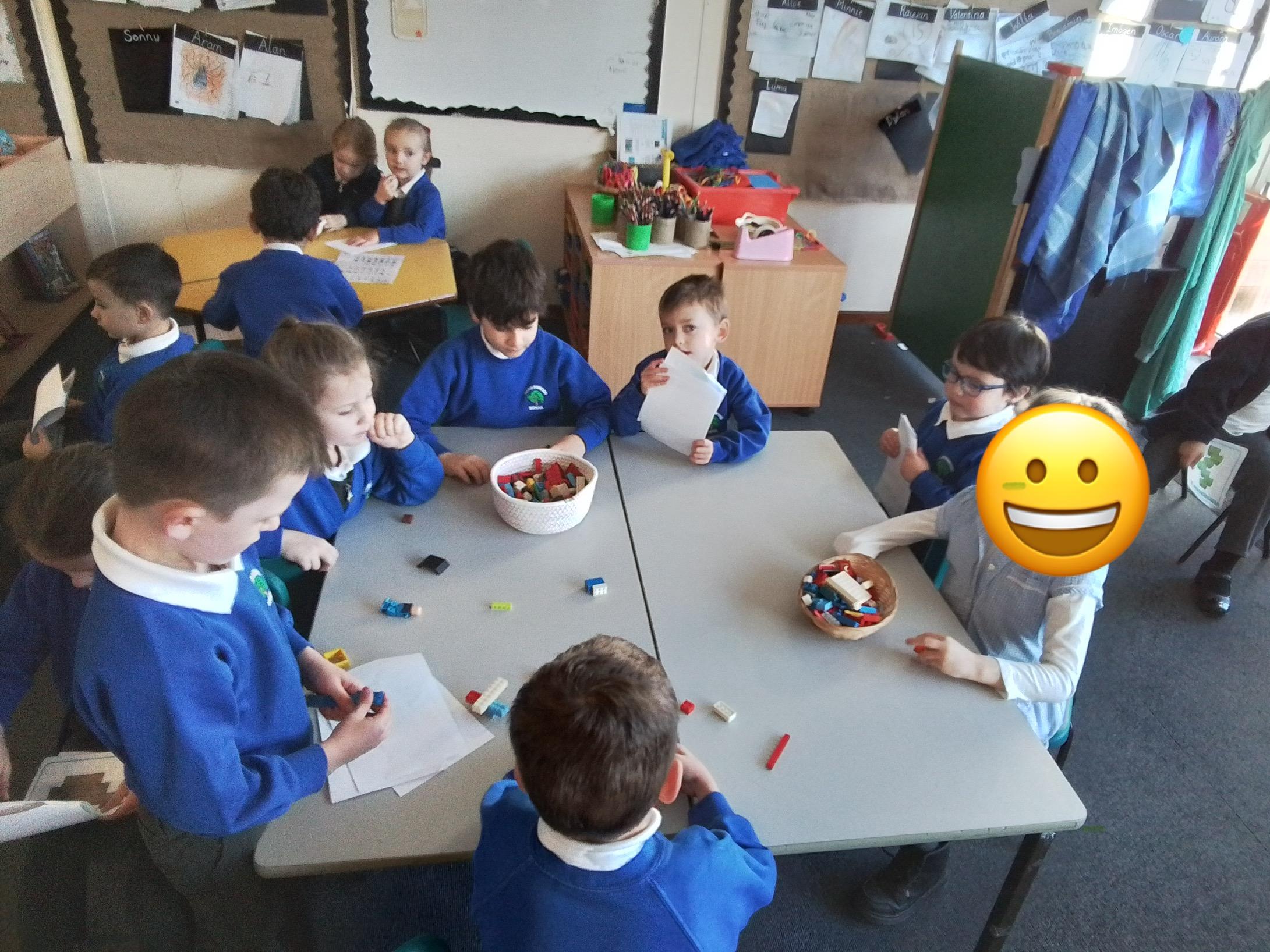 We are reading How to Wash a Woolly Mammoth in English so today we have been following other instructions. Here the class are practicing using bossy verbs to get their partner to make a Lego model correctly.