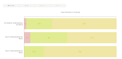 Our EYFS spring data for Understanding the World has had some overall improvements with Science attainment. The data is as follows: