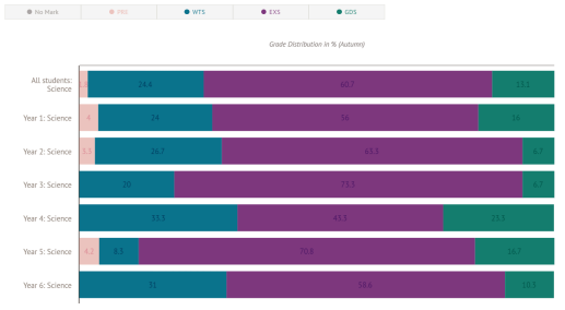 Our KS1 and KS2 Science data for Autumn is as follows: